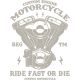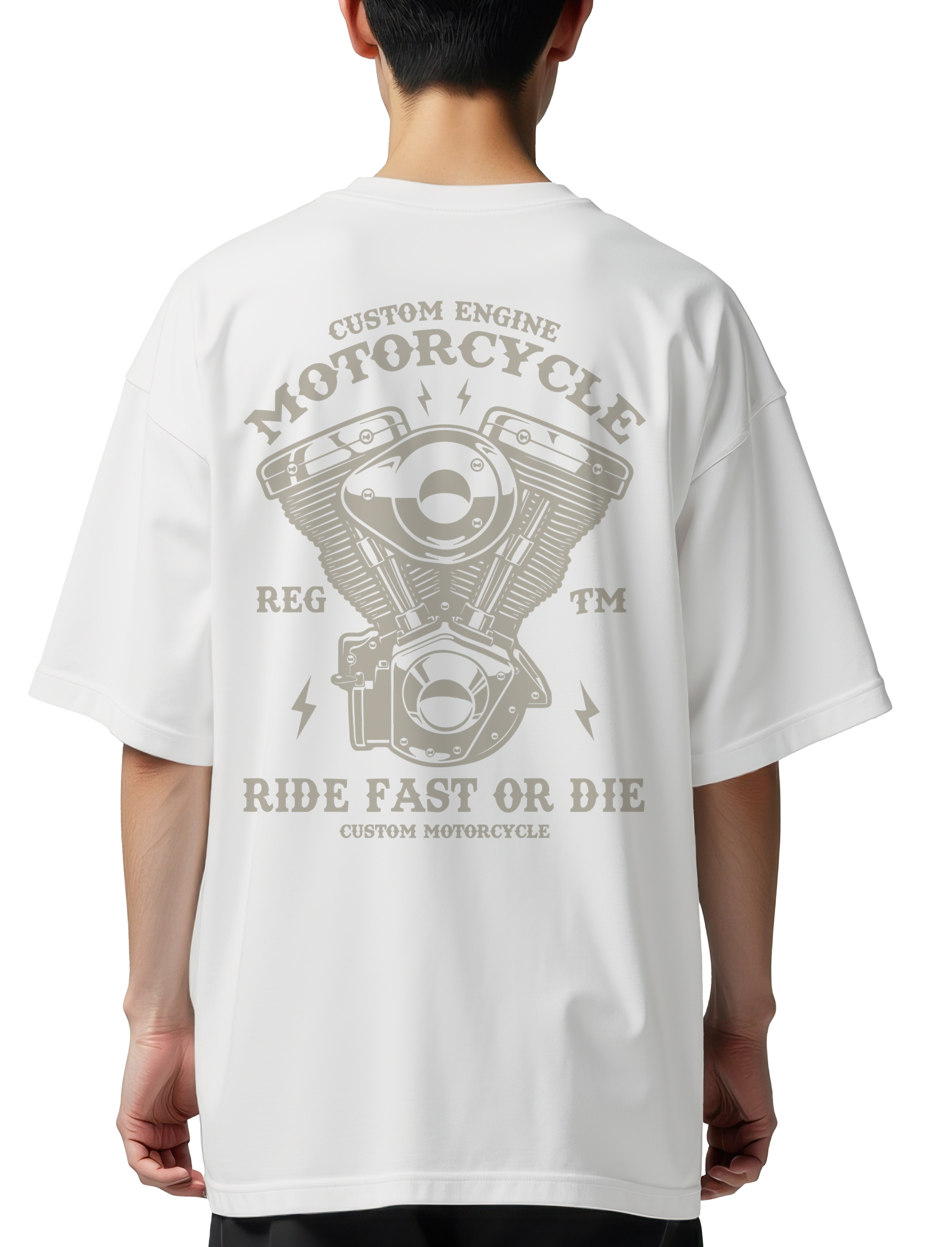 Γραφικό V-twin κινητήρα, κείμενα «CUSTOM ENGINE», «RIDE FAST OR DIE».