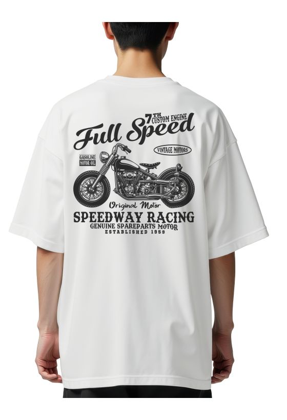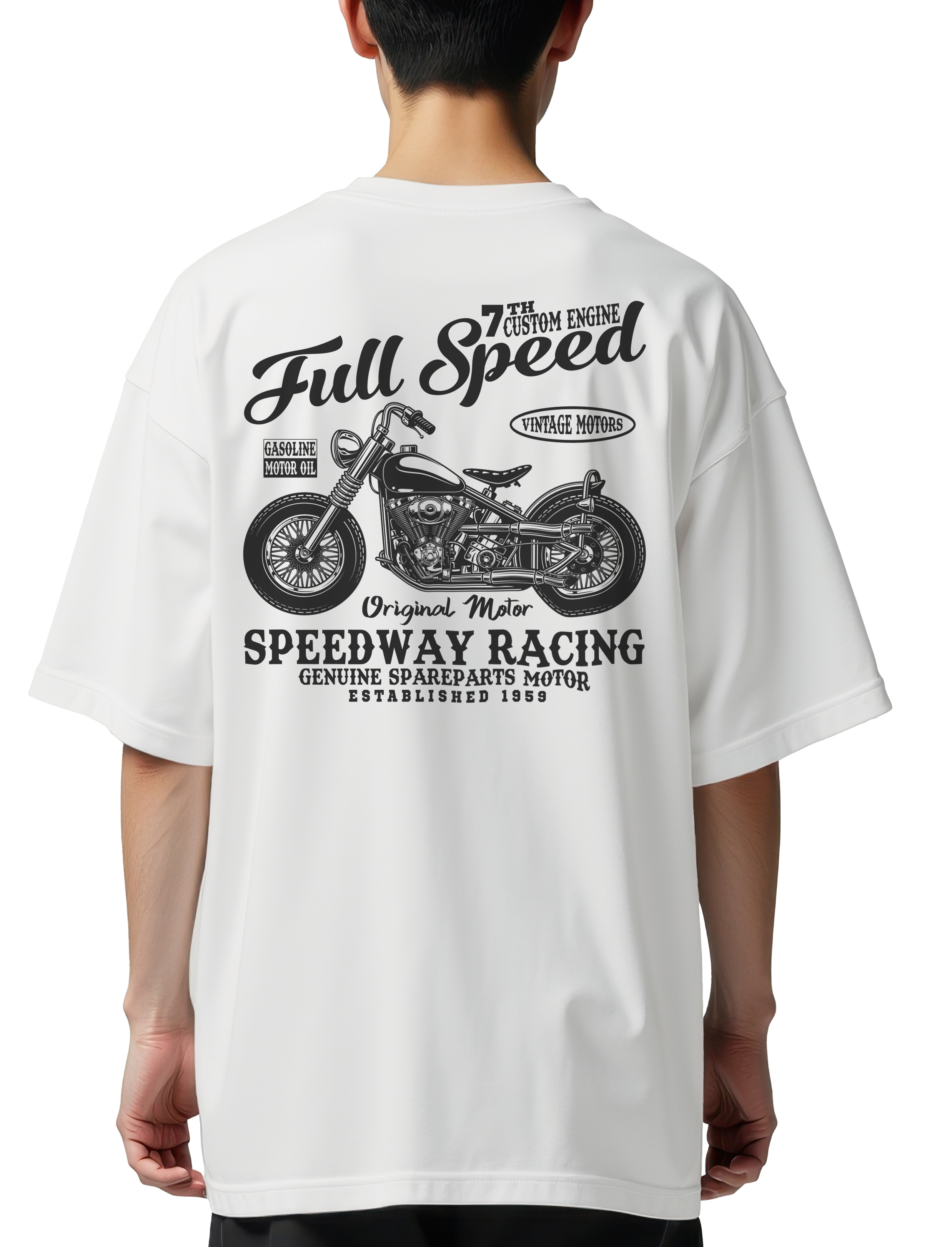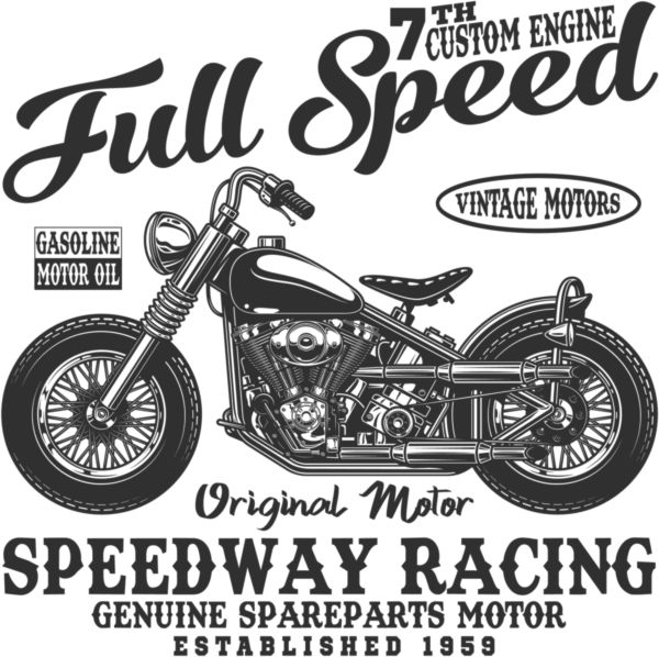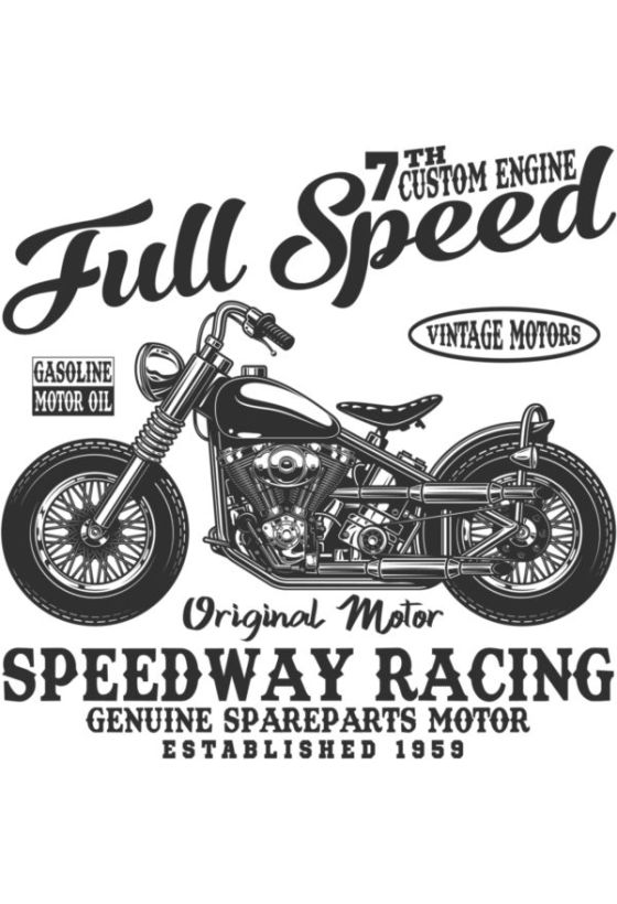 Vintage μοτοσυκλέτα με πολλά κείμενα: «Full Speed», «VINTAGE MOTORS», «EST 1959».