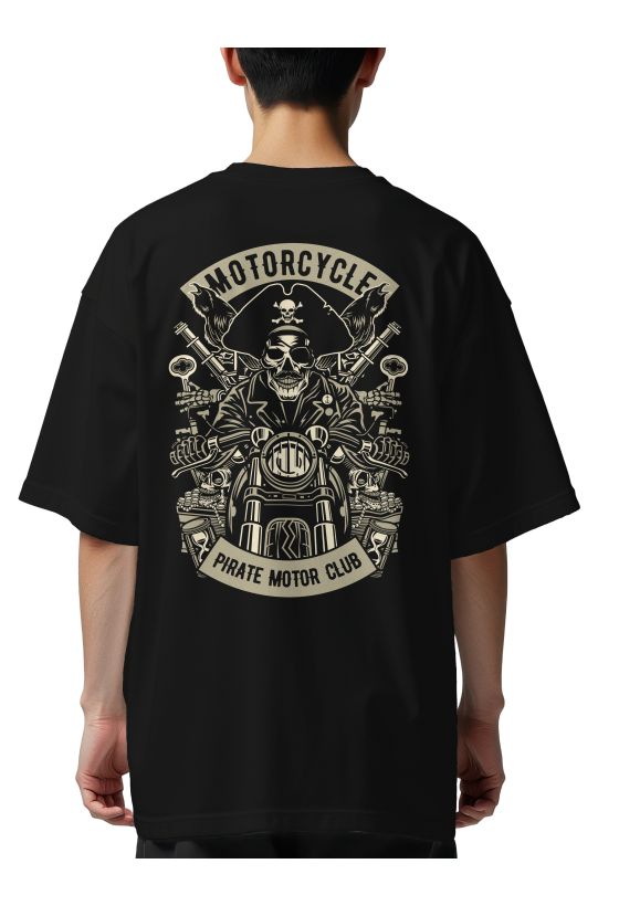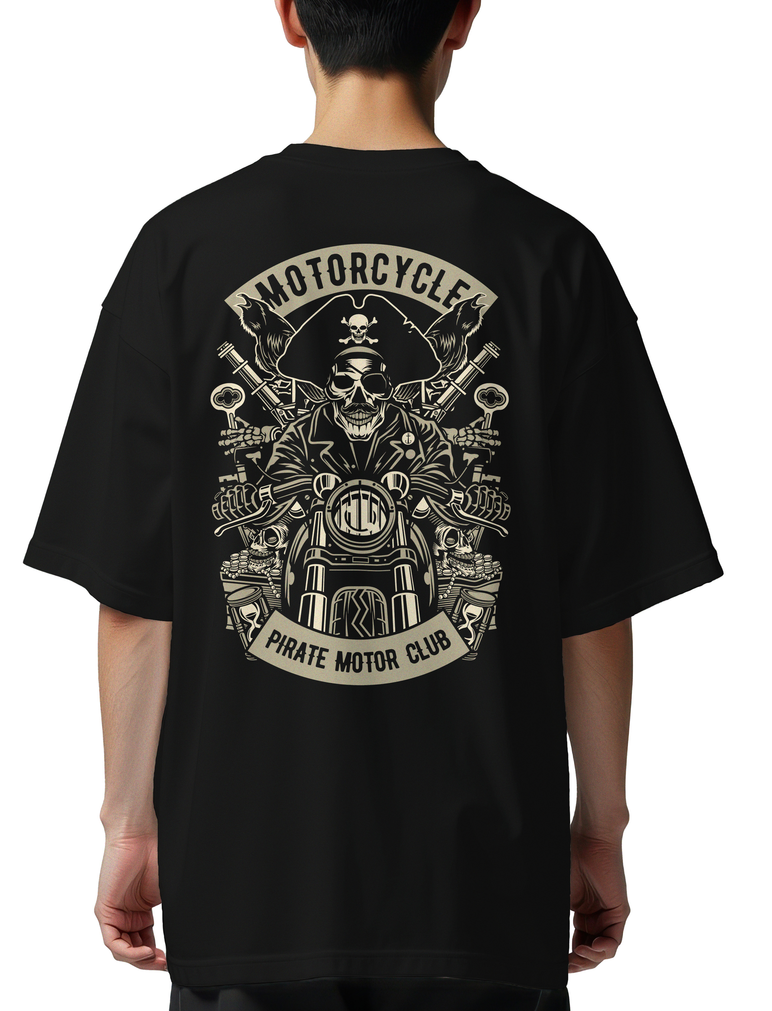 Oversized T-Shirt Pirate Motorcycle Club Pop Culture Black