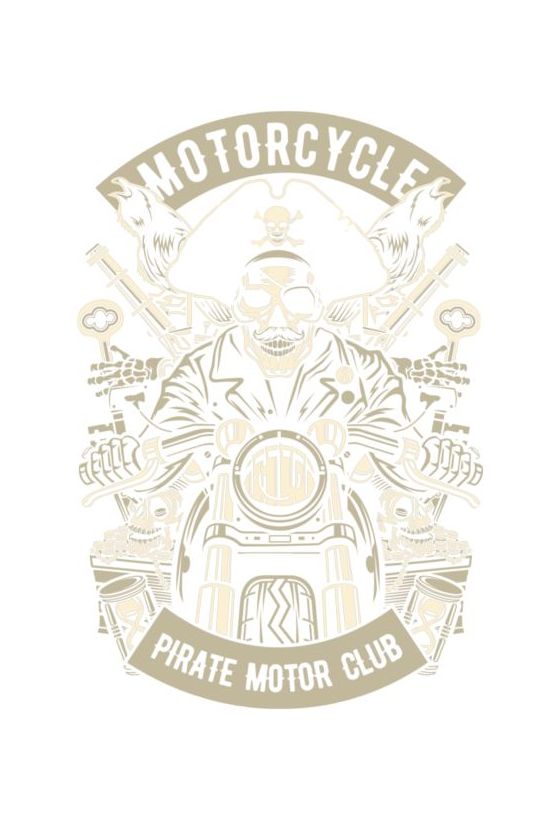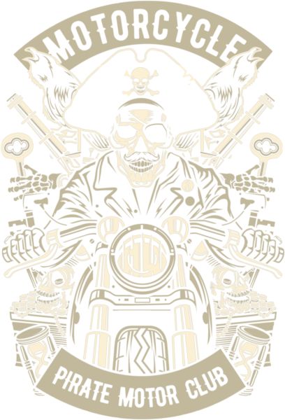 Πειρατικό κρανίο σε μοτοσυκλέτα με κοράκια, θησαυρούς και "PIRATE MOTOR CLUB".