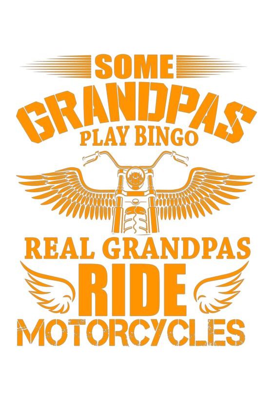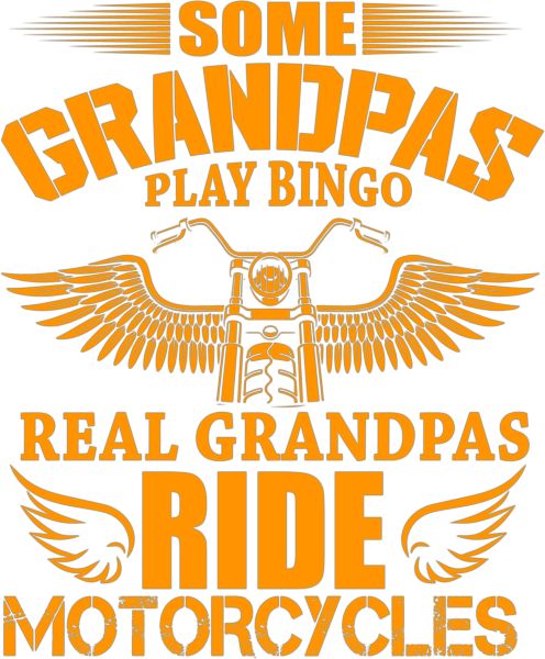 Quote "REAL GRANDPAS RIDE MOTORCYCLES" με μοτοσικλέτα και φτερά.