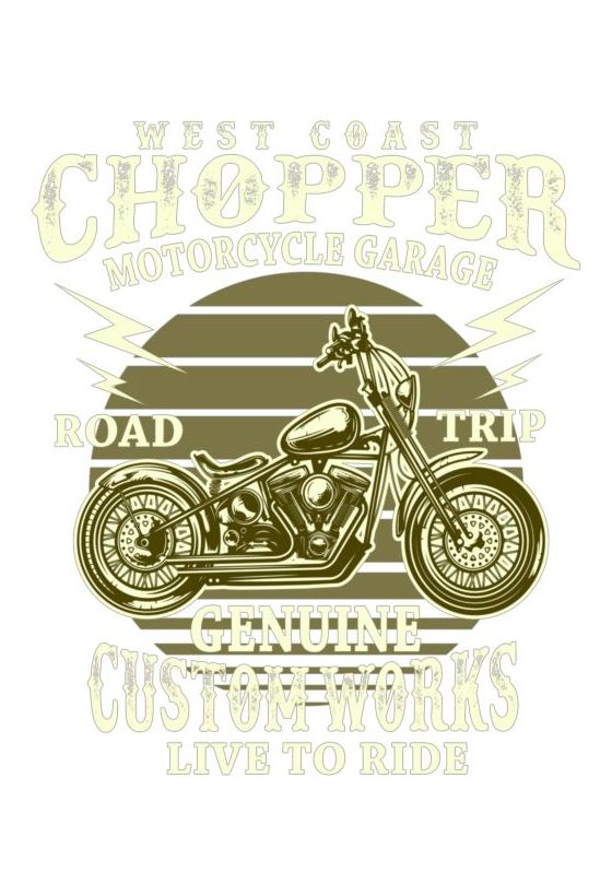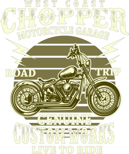 Vintage σχέδιο chopper μοτοσυκλέτας με κείμενα "WEST COAST CHOPPER", "LIVE TO RIDE".