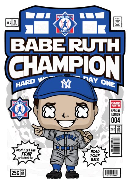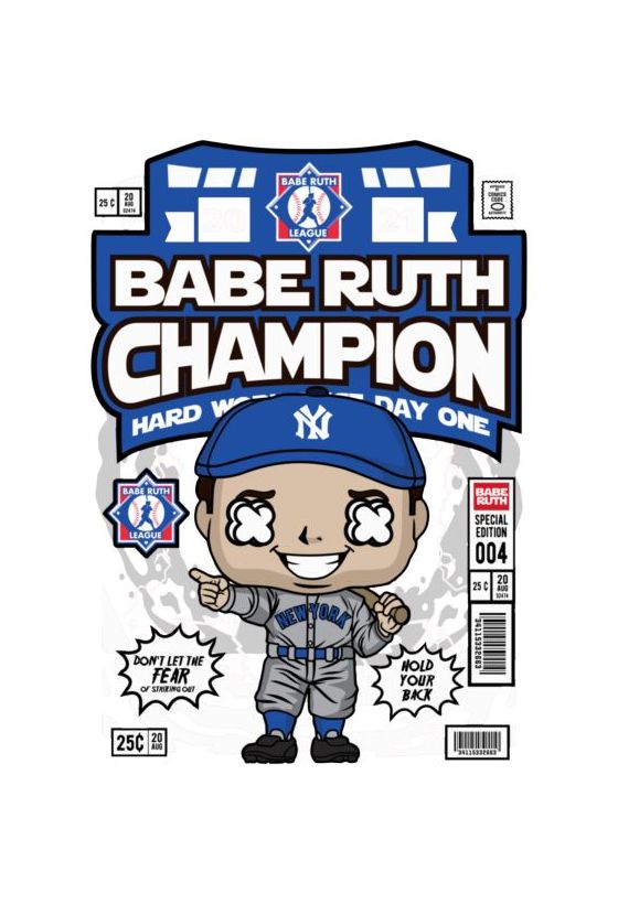 Funko Pop Babe Ruth σε κόμικ εξώφυλλο, με τίτλο «BABE RUTH CHAMPION».