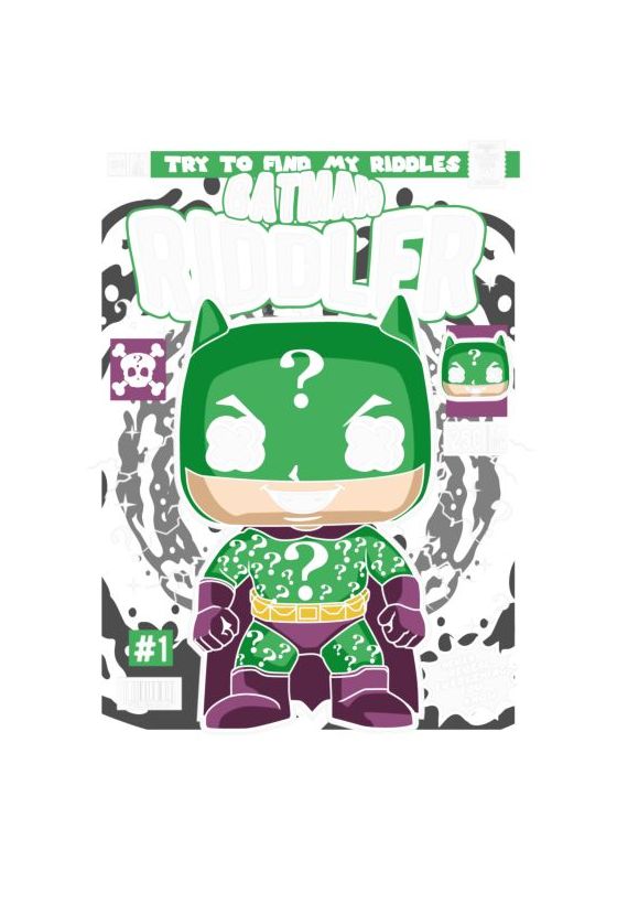 Chibi Batman-Riddler σε εξώφυλλο κόμικ, τίτλος «TRY TO FIND MY RIDDLES».