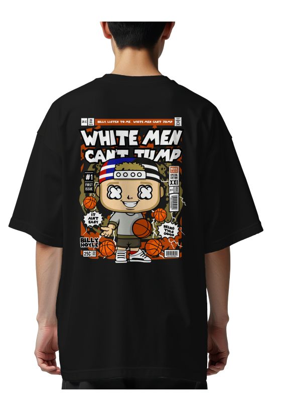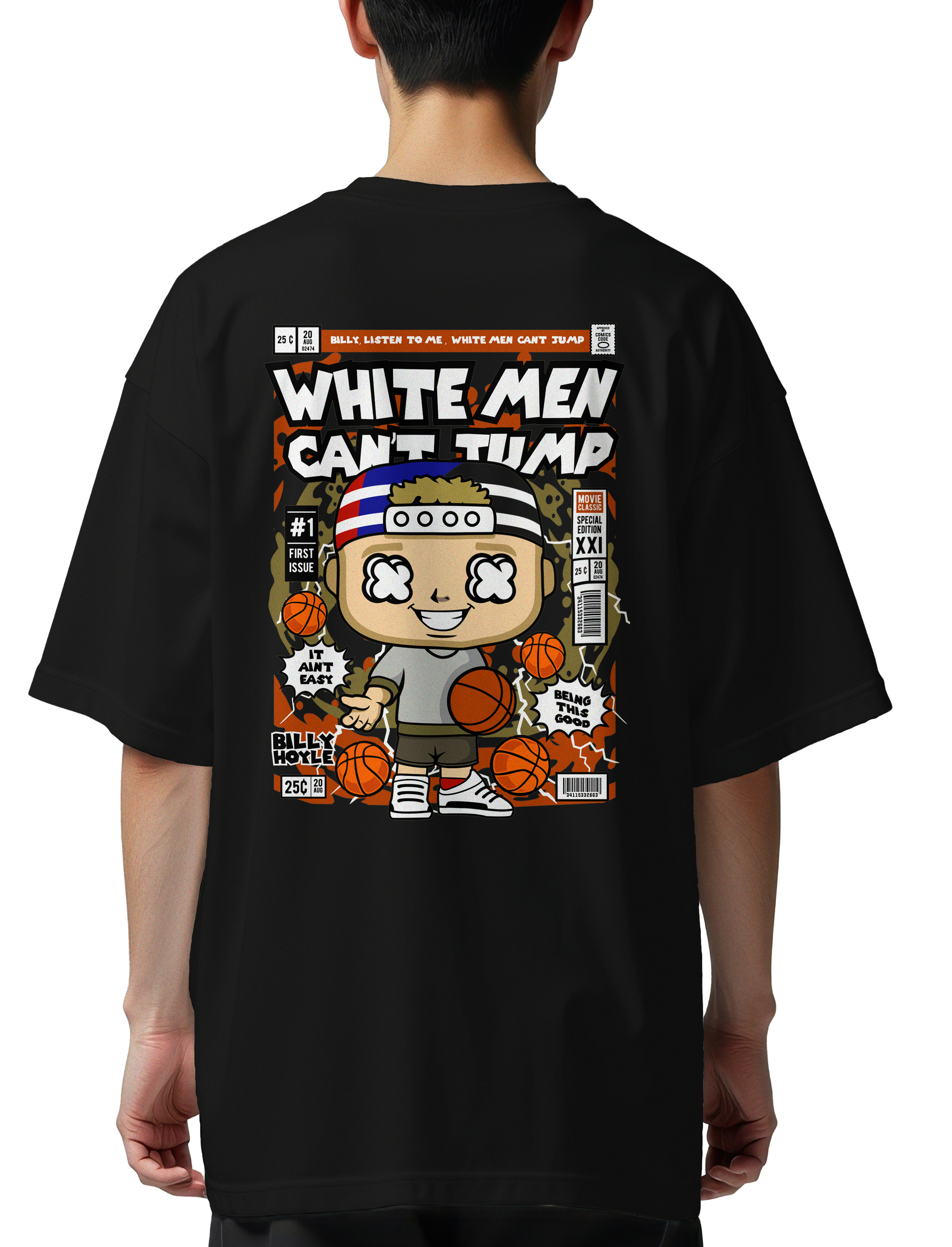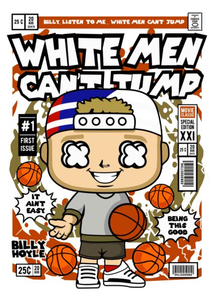 Κόμικ εξώφυλλο «White Men Can't Jump» με Billy Hoyle σε καρτουνίστικο στυλ.