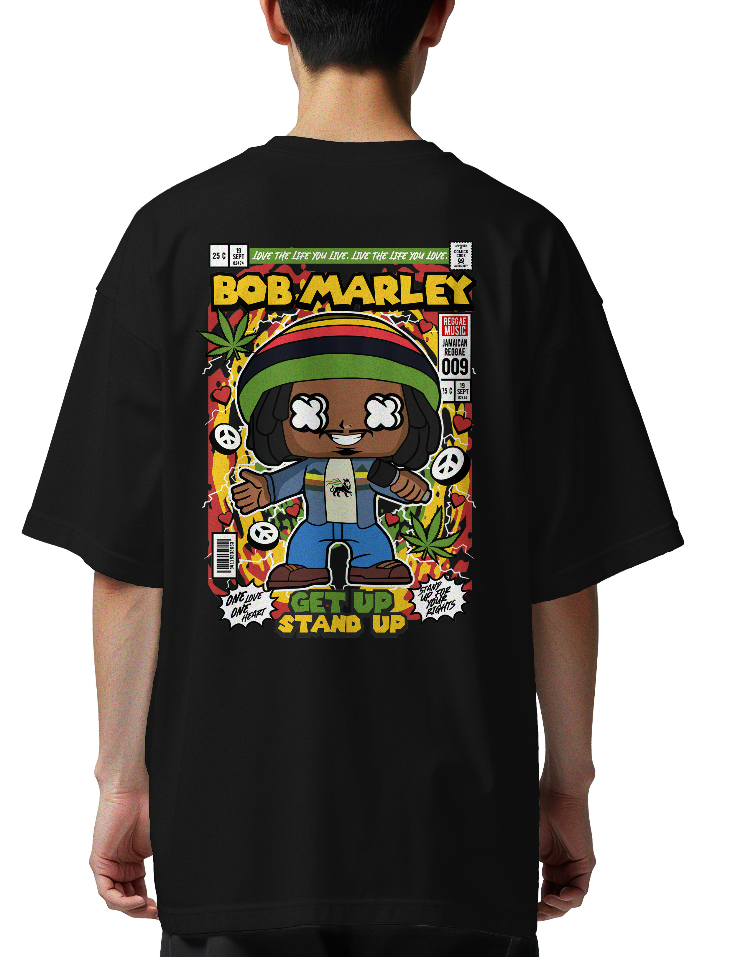 Oversized T-Shirt Bob Marley Pop Culture Black