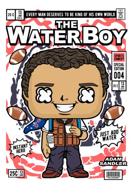 Funko Pop Bobby Boucher («The Waterboy») σε εξώφυλλο κόμικ με τίτλο και ατάκες.