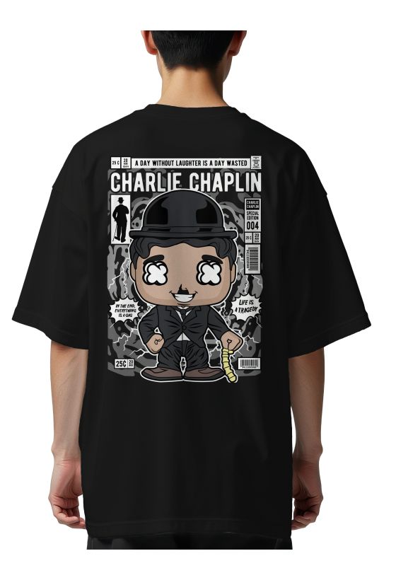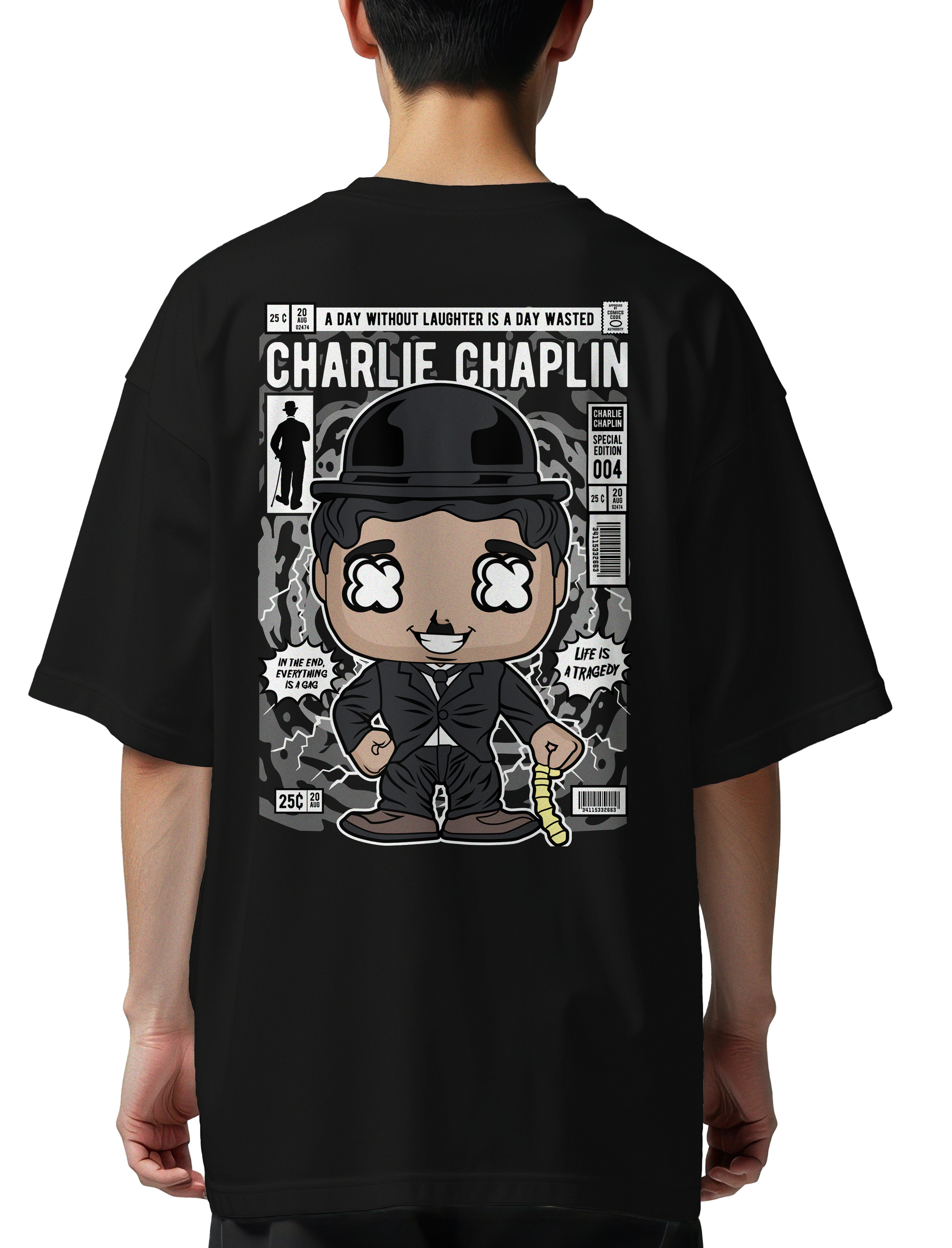 Oversized T-Shirt Charlie Chaplin Pop Culture Black