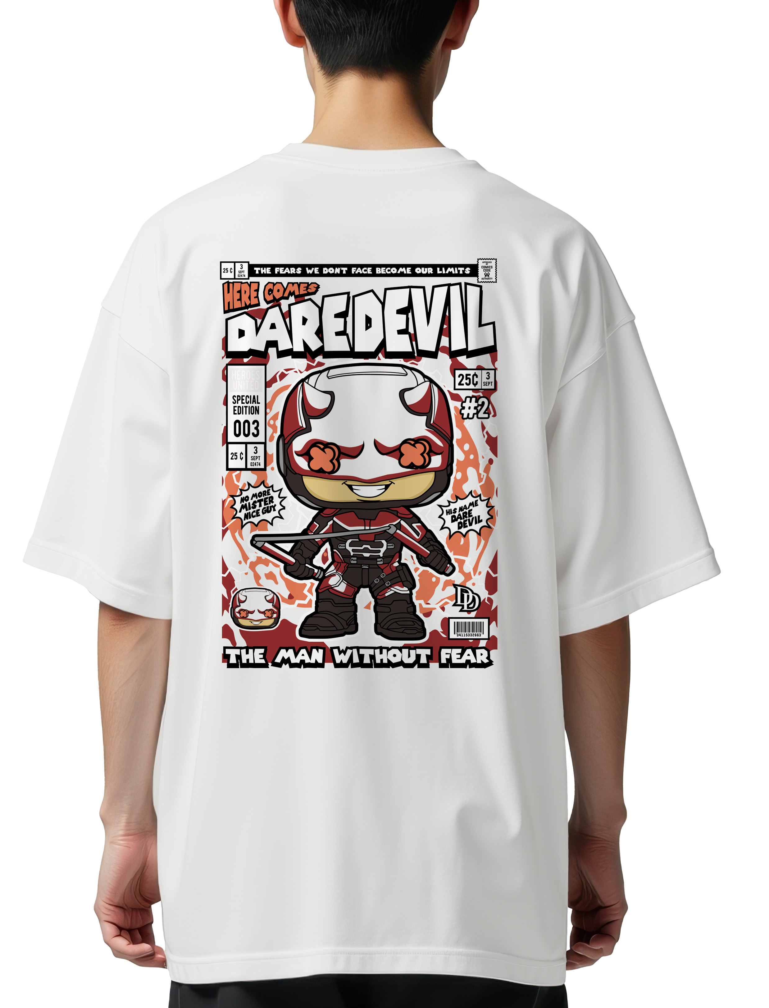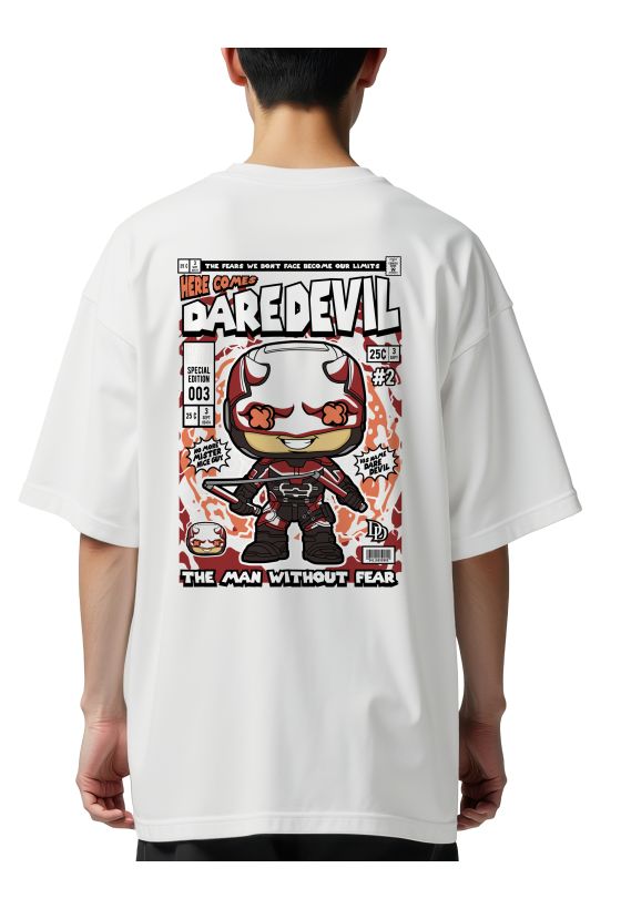 Funko Pop Daredevil, κόκκινη στολή, εξώφυλλο κόμικ με τίτλο και φυσαλίδες.