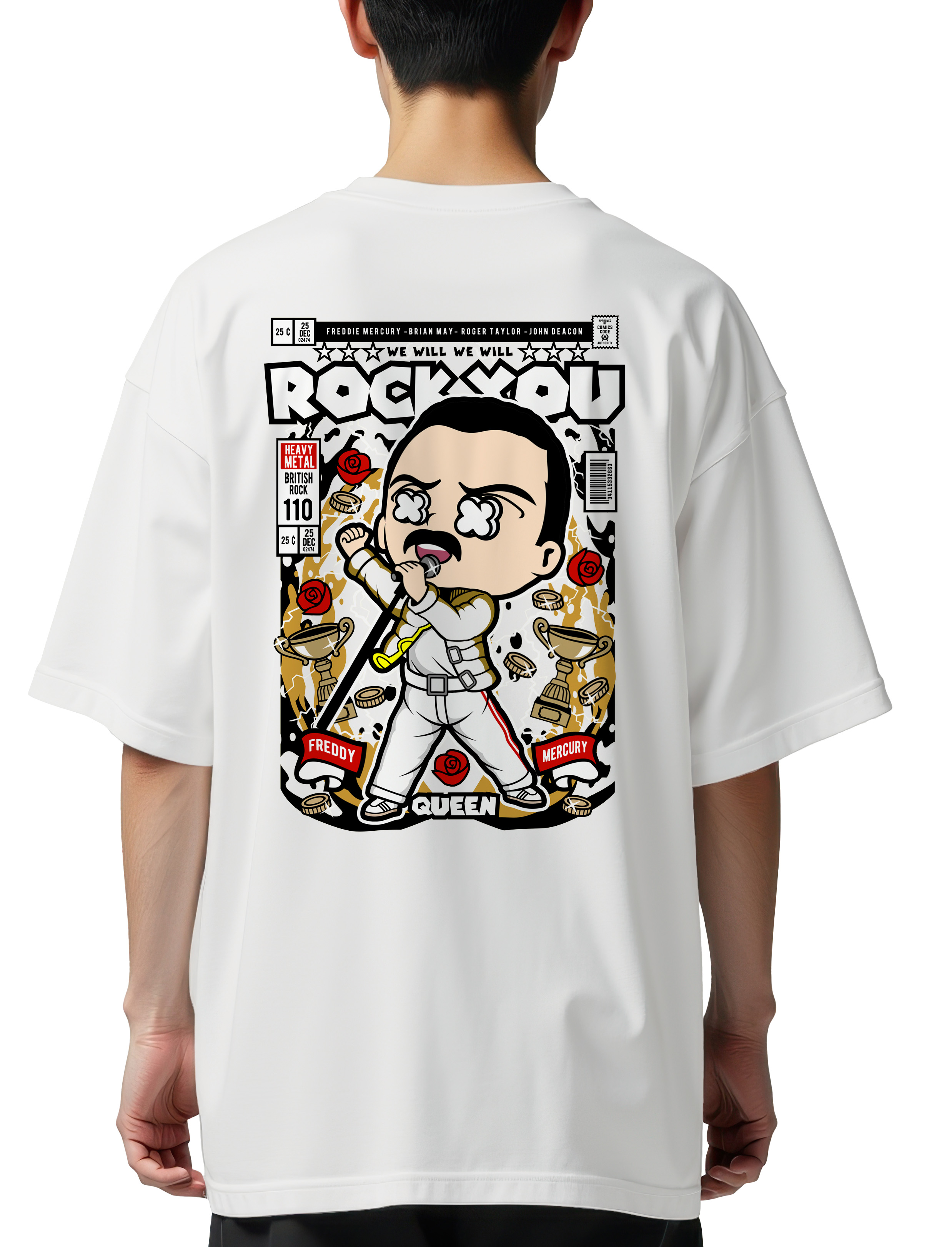 Oversized T-Shirt Freddy Mercury Pop Culture White