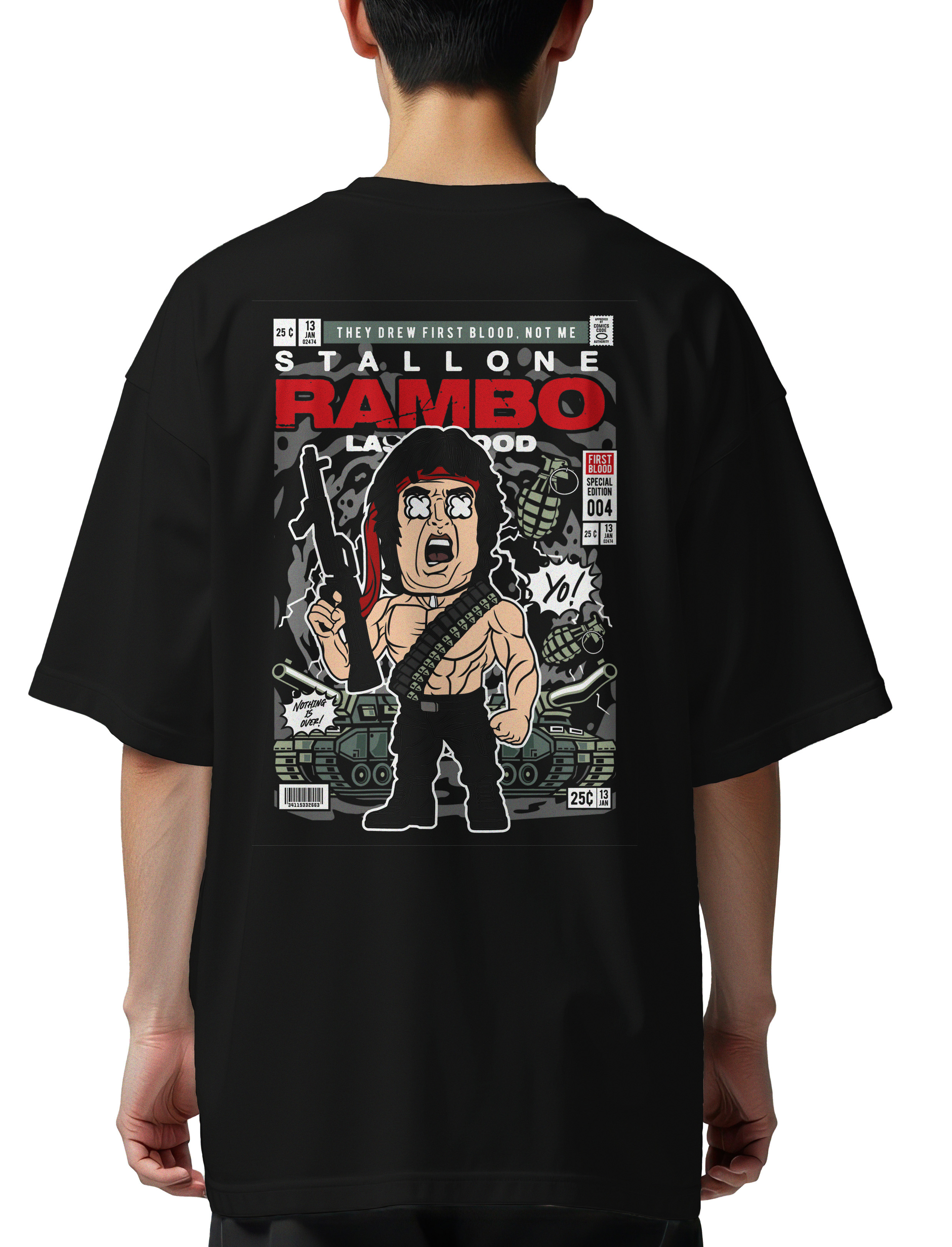 Oversized T-Shirt John Rambo Pop Culture Black