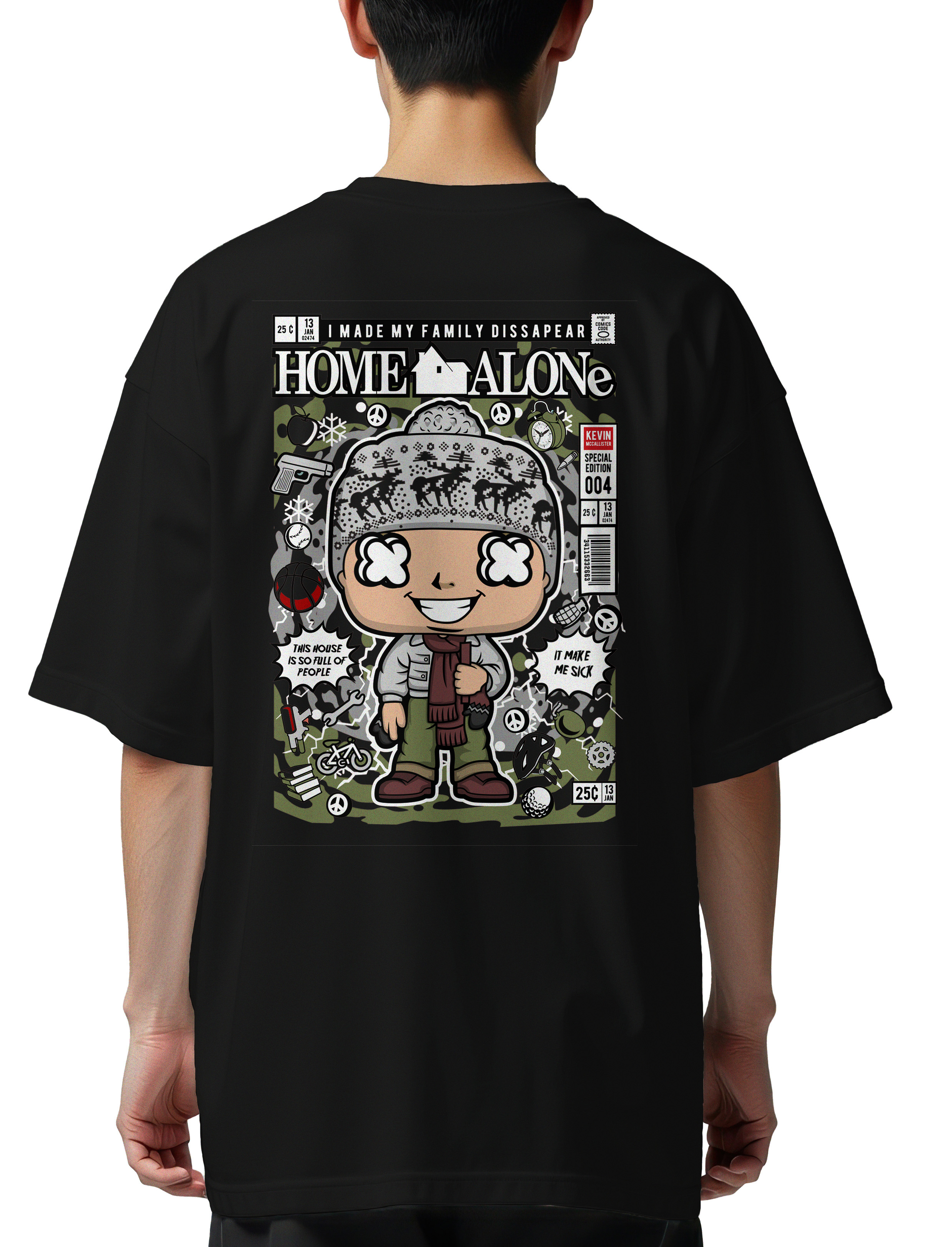 Oversized T-Shirt Kevin Home Alone Pop Culture Black