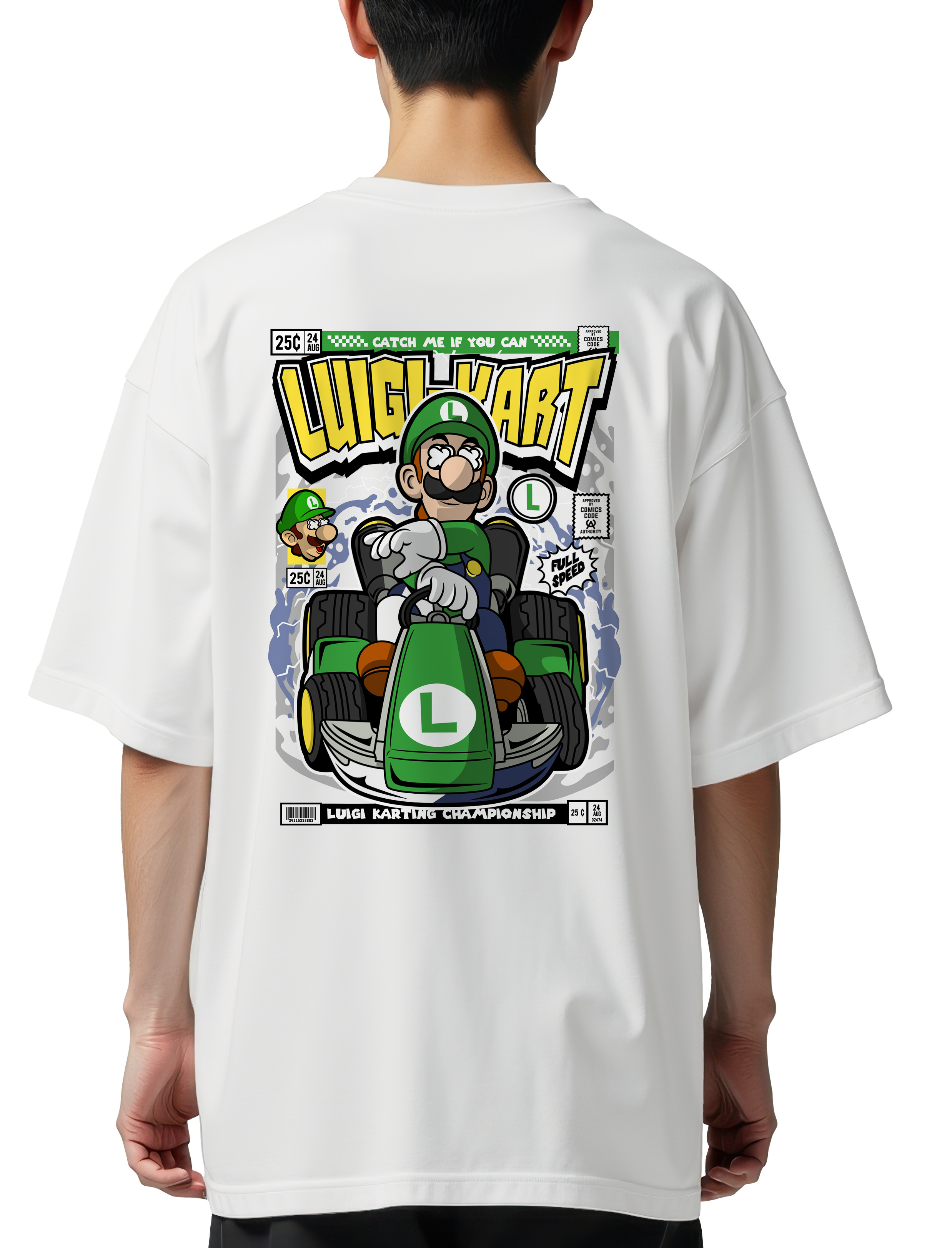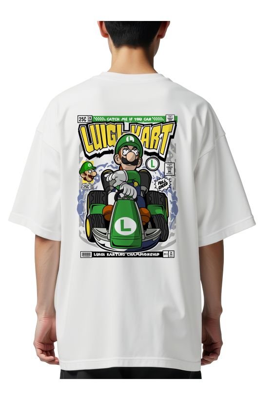 Oversized T-Shirt Luigi Karting Pop Culture White