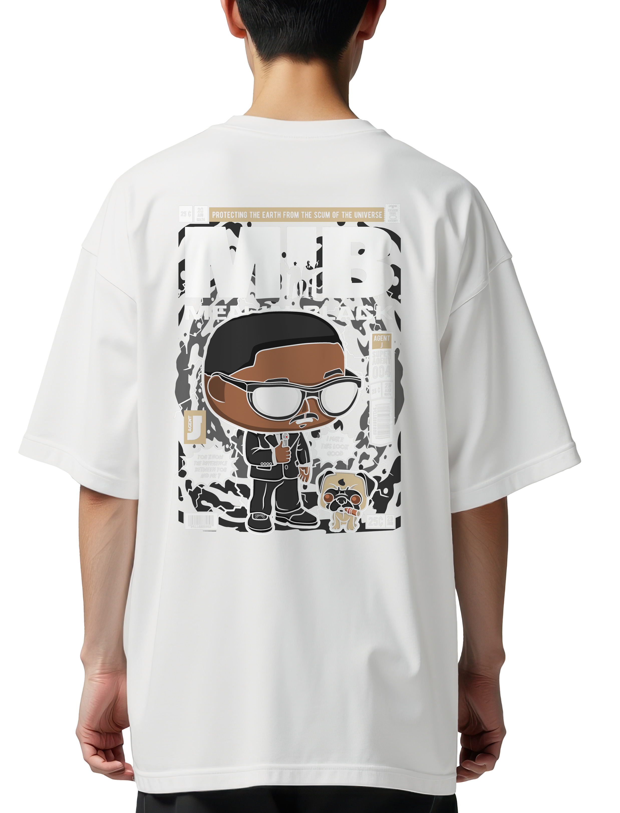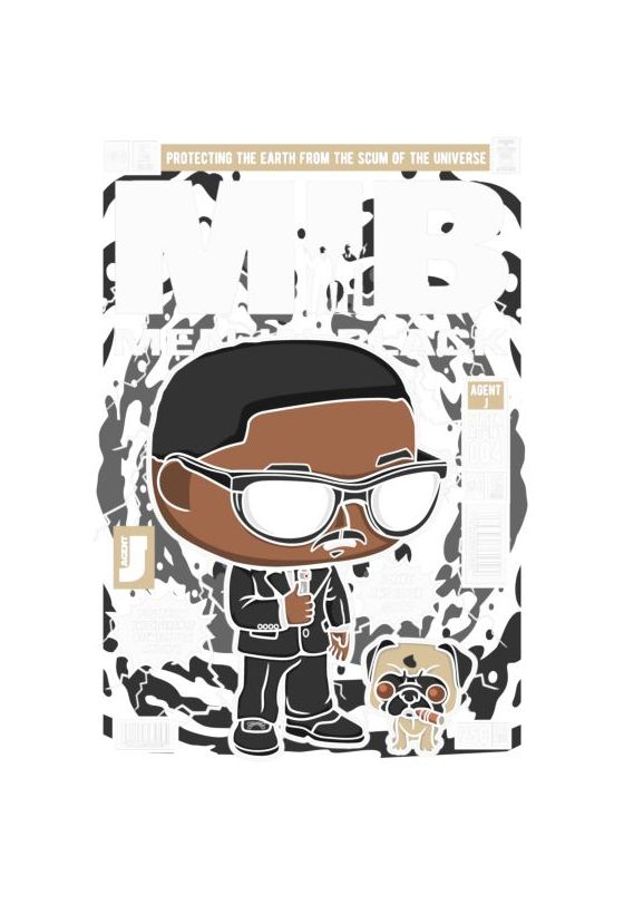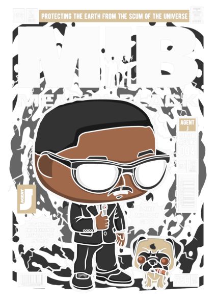 Men in Black σε chibi κόμικ στυλ, με Agent J και Frank the Pug.