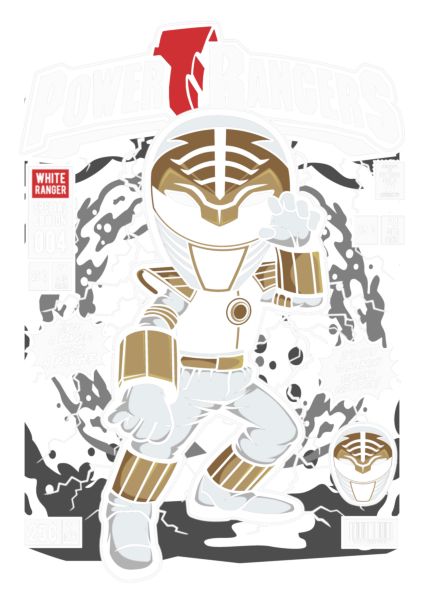 White Ranger από Power Rangers σε κόμικ εξώφυλλο με κλασικά στοιχεία.