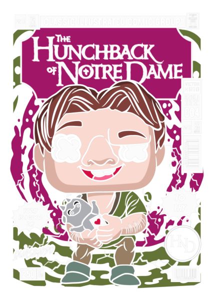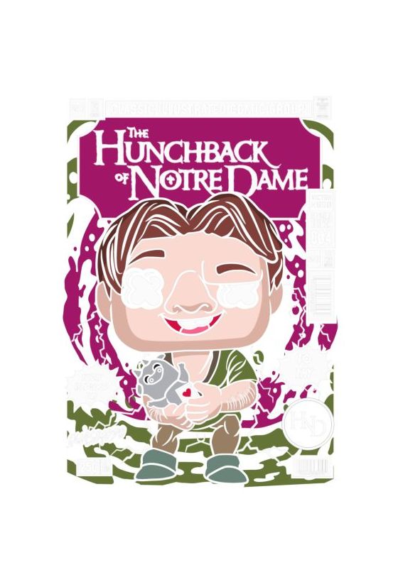 Quasimodo σε chibi στυλ με γαργκόιλ, εξώφυλλο "Hunchback of Notre Dame".