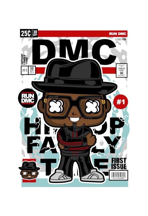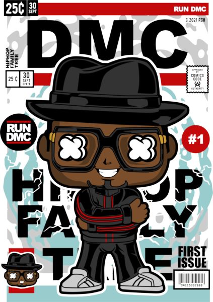 Χαρακτήρας τύπου Jam Master Jay (Run DMC) σε κόμικ στυλ με fedora και φόρμα.