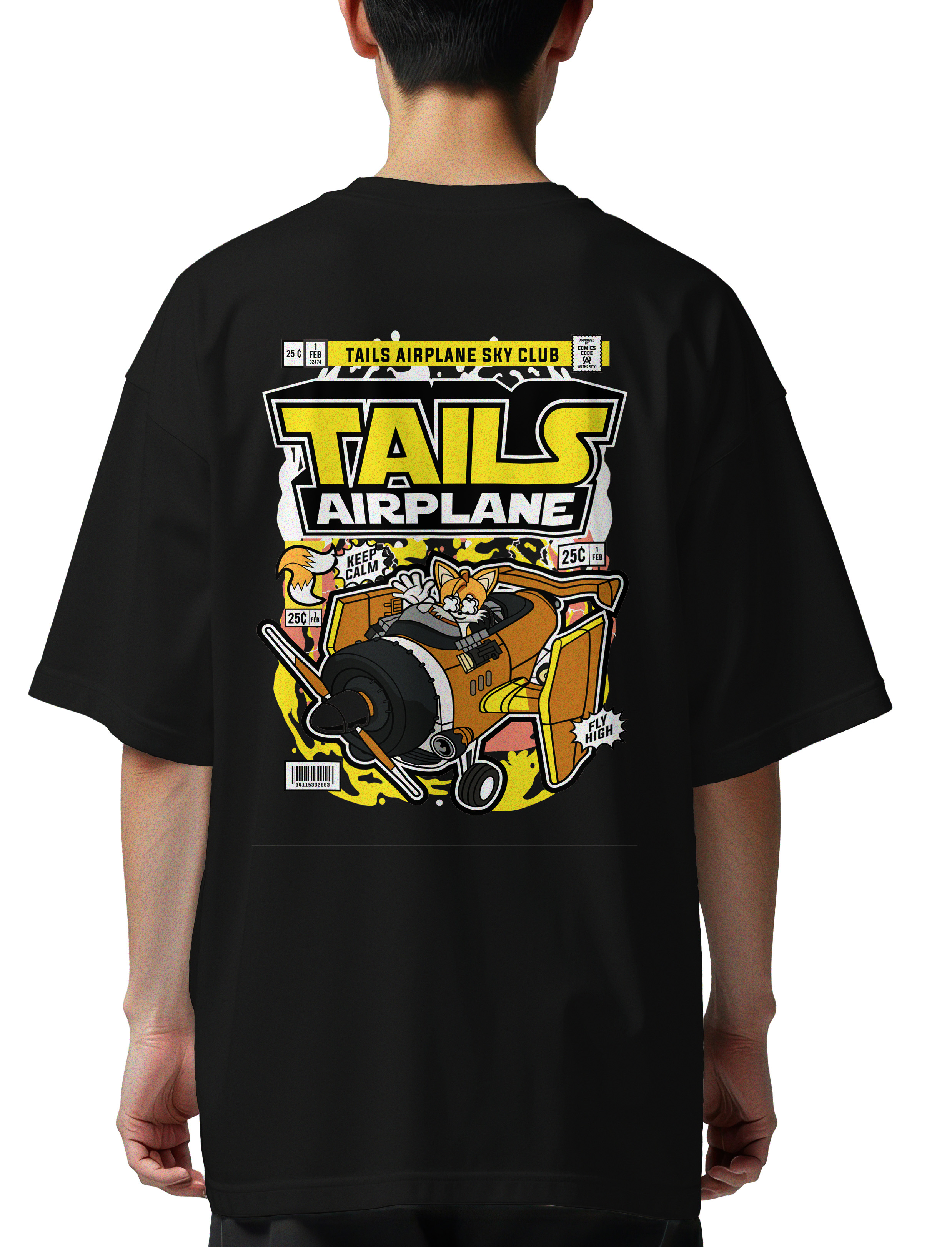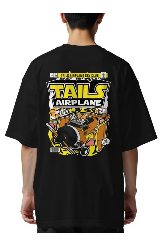 Oversized T-Shirt Sonic Tails Airplane Pop Culture Black