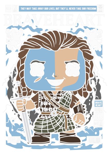 William Wallace (Braveheart) σε Funko Pop στυλ εξώφυλλο κόμικ με φράση "ΠΟΤΕ ΔΕΝ ΘΑ ΜΑΣ ΠΑΡΟΥΝ ΤΗΝ ΕΛΕΥΘΕΡΙΑ!".