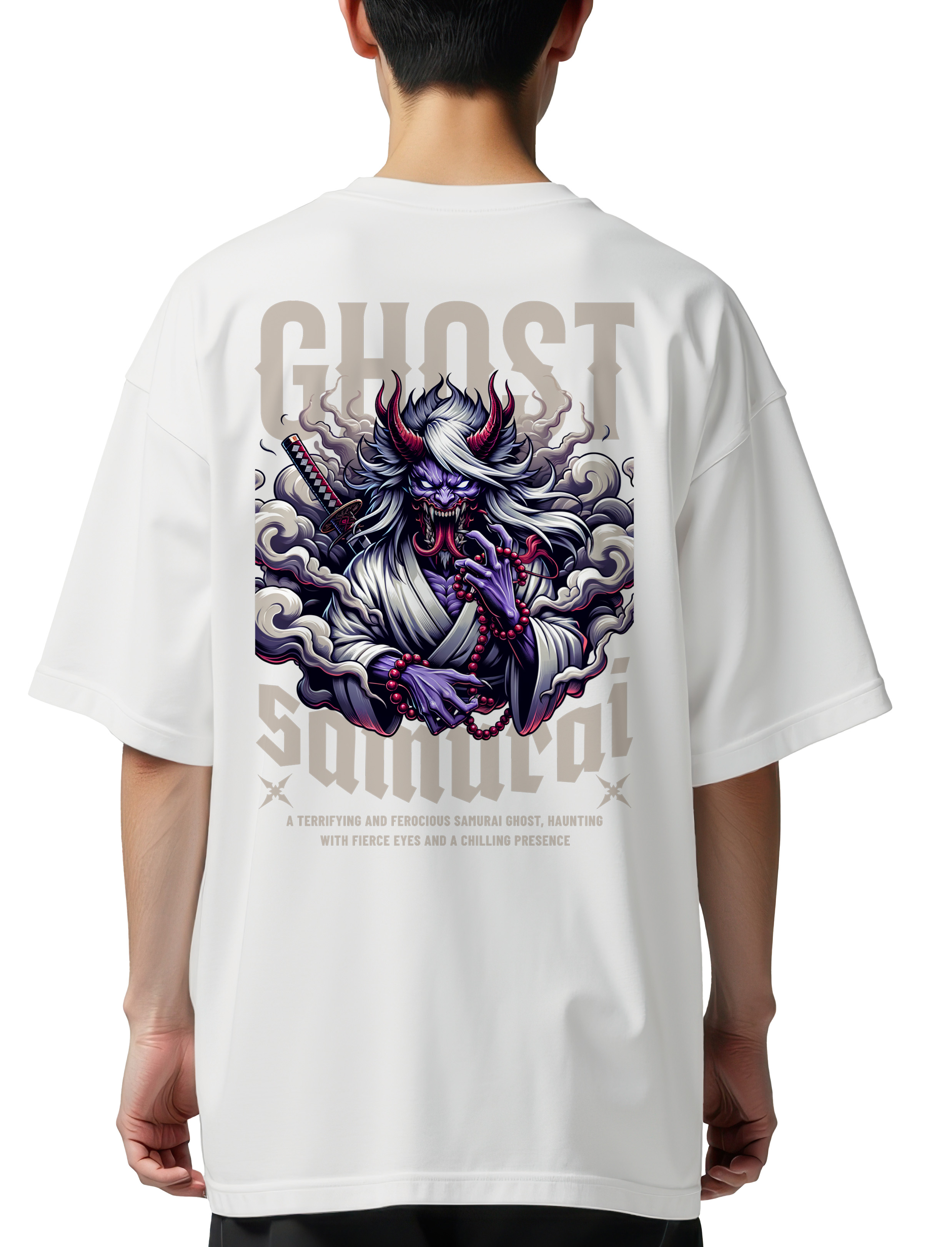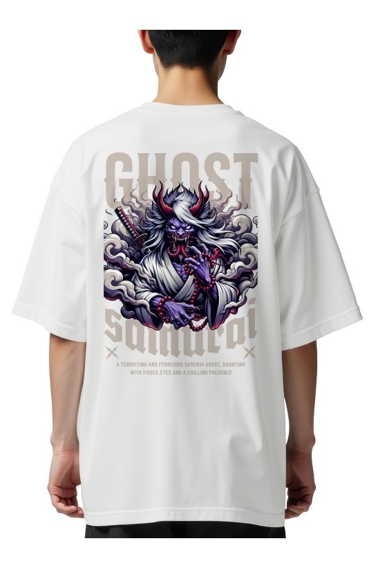 Oversized T-Shirt Ghost Samurai Pop Culture White