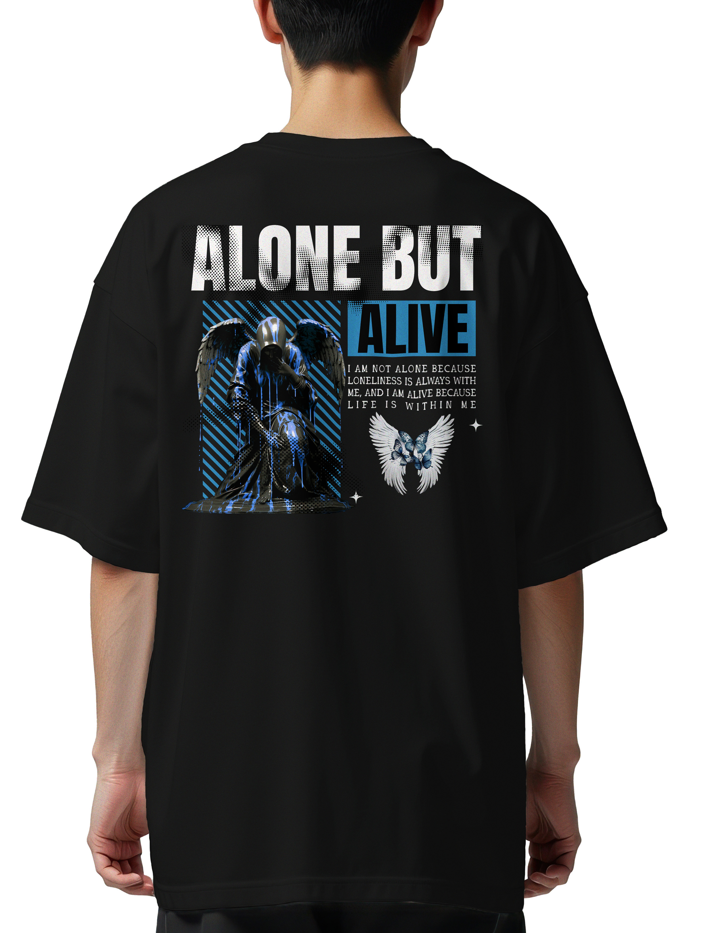 Oversized T-Shirt Alone But Alive Pop Culture Black