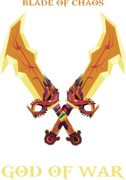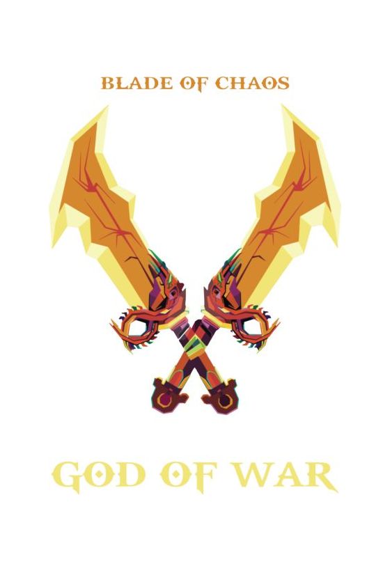 Οι λεπίδες Blades of Chaos (God of War), pop-art χρωματική παλέτα, επιγραφή.