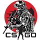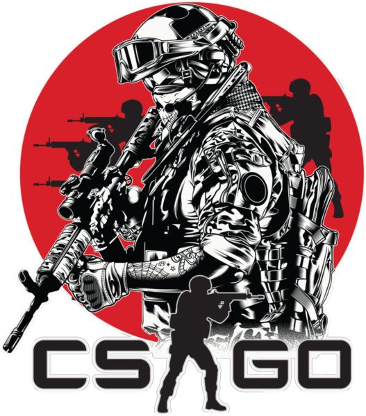 Τακτικός στρατιώτης με μάσκα κρανίου, κόκκινο φόντο, λογότυπο «CS GO».