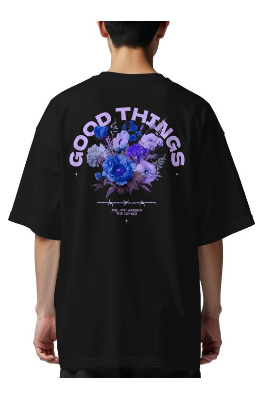 Oversized T-Shirt Good Things Flower Pop Culture Black