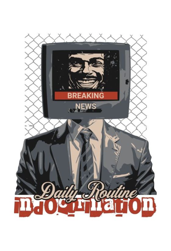 Άτομο με τηλεόραση-κεφάλι, κείμενο «ΣΤΟΙΧΕΙΑ ΕΙΔΗΣΗΣ». Θέμα χειραγώγησης ΜΜΕ.