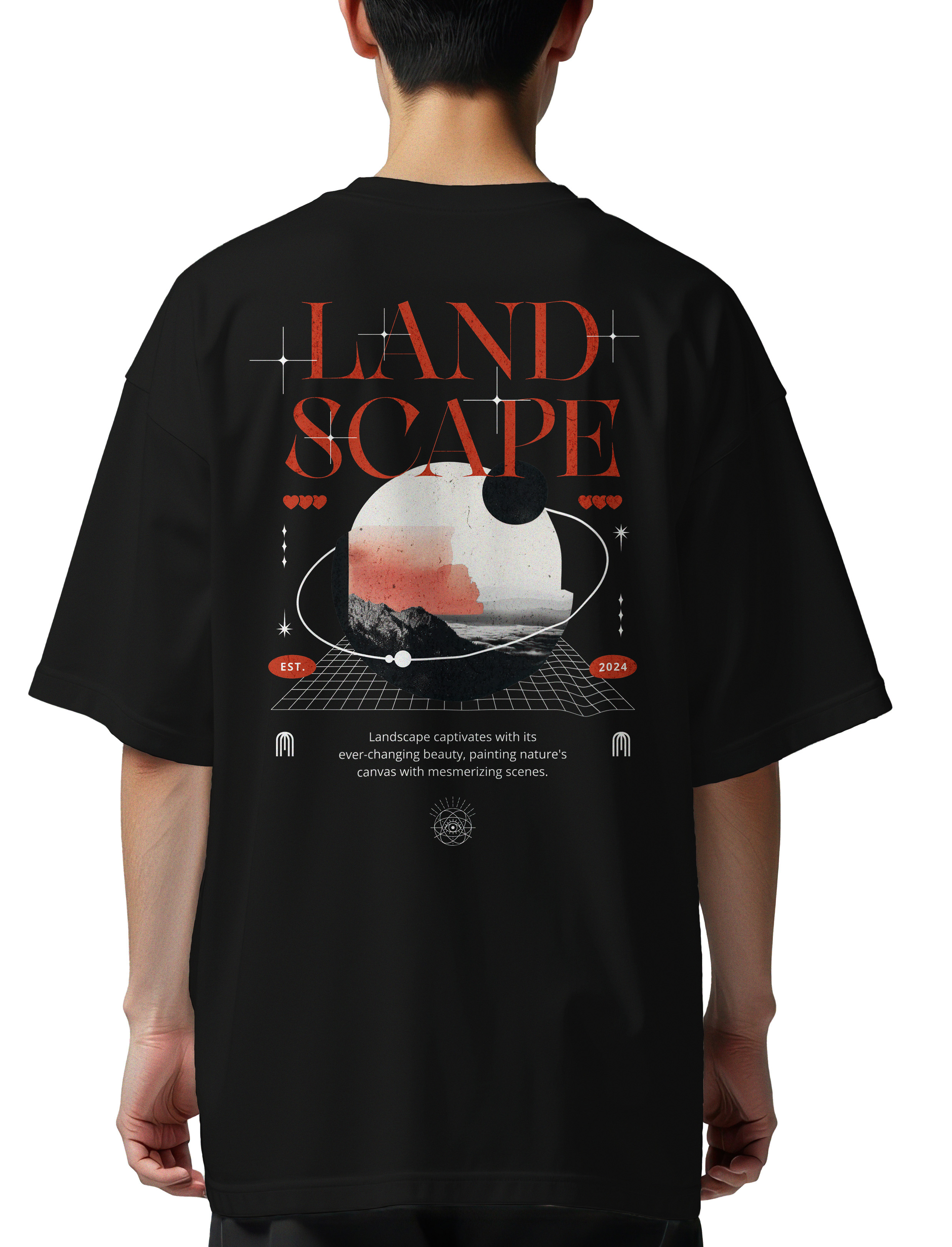 Oversized T-Shirt Land Scape Pop Culture Black