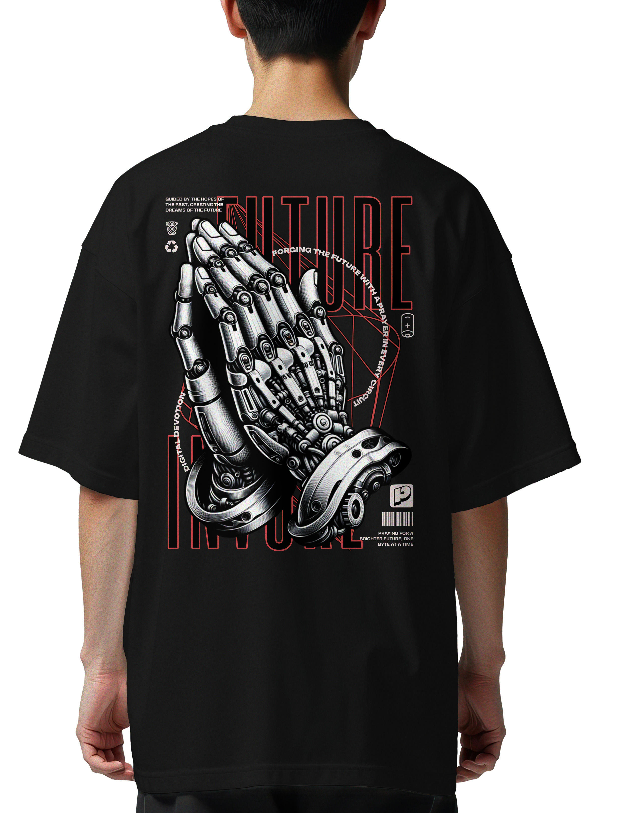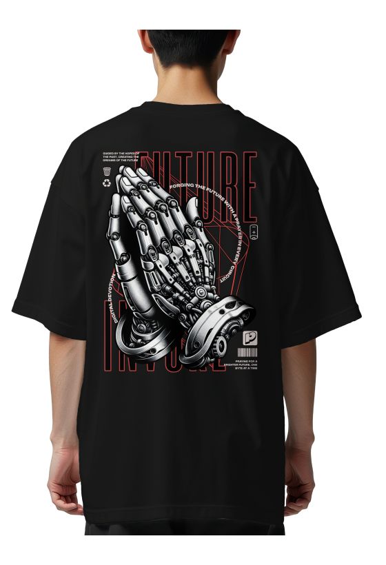 Oversized T-Shirt Robot Graphic Pop Culture Black