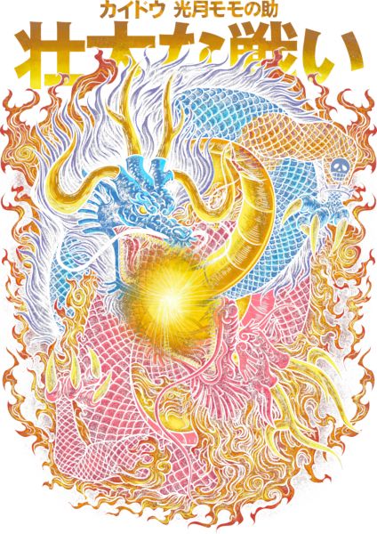 Μπλε και ροζ δράκος σε μάχη με φλόγες και έκρηξη φωτός.