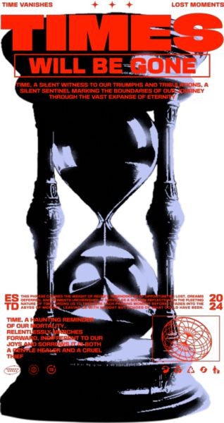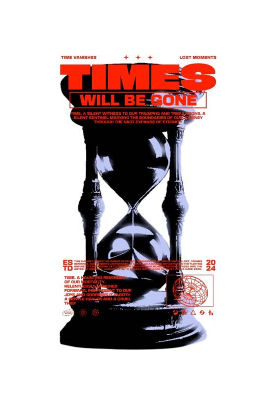 Στυλιζαρισμένη κλεψύδρα με κόκκινο κείμενο «ΟΙ ΚΑΙΡΟΙ ΘΑ ΠΑΝΕ». Θέμα θνησιμότητας.