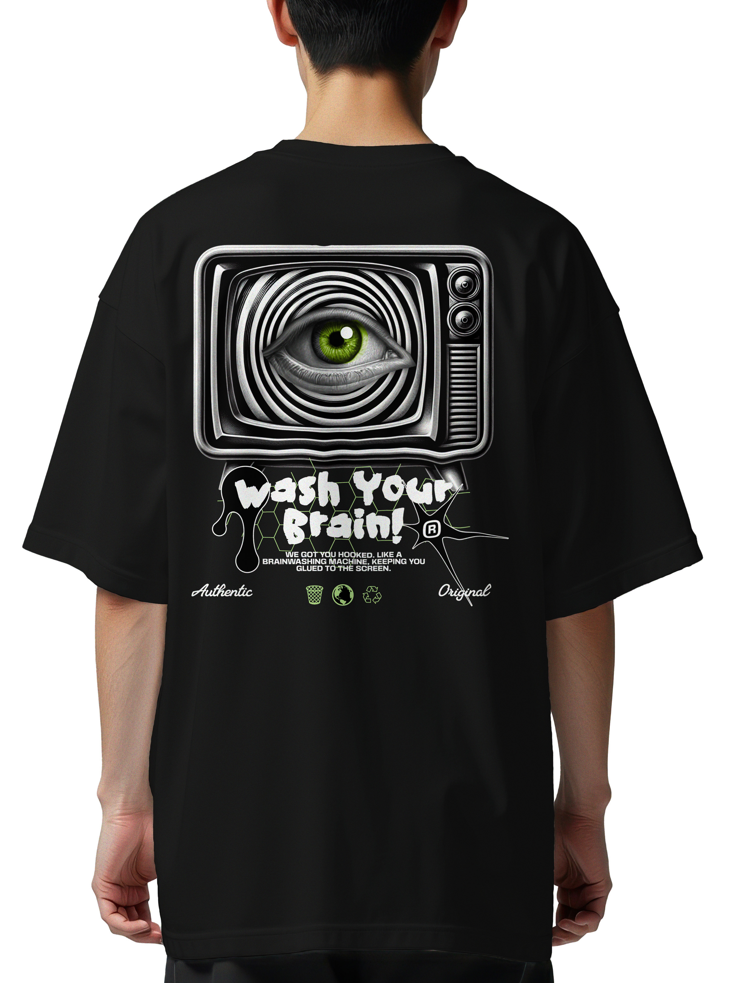 Oversized T-Shirt Wash Your Brain Pop Culture Black