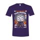 Taskmaster (Marvel) σε Funko Pop κόμικ στυλ, μάσκα-κρανίο, μανδύας, quote bubbles, φόντο με φλόγες.
