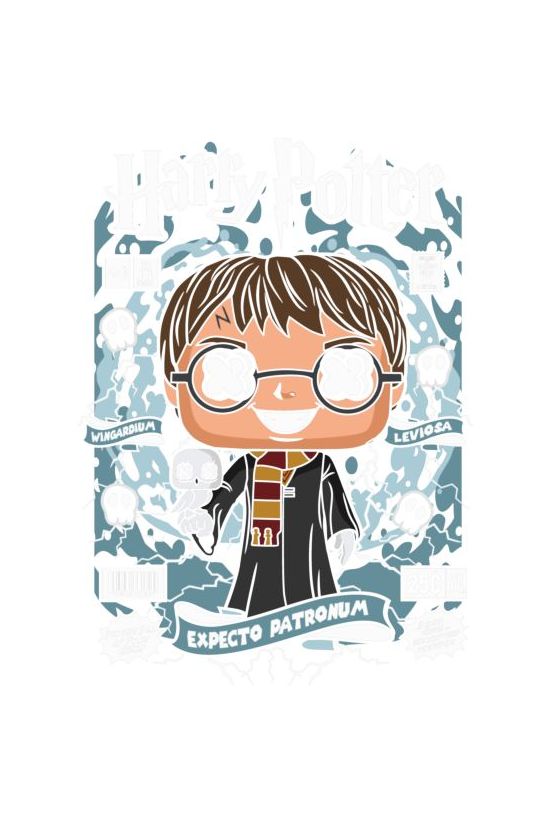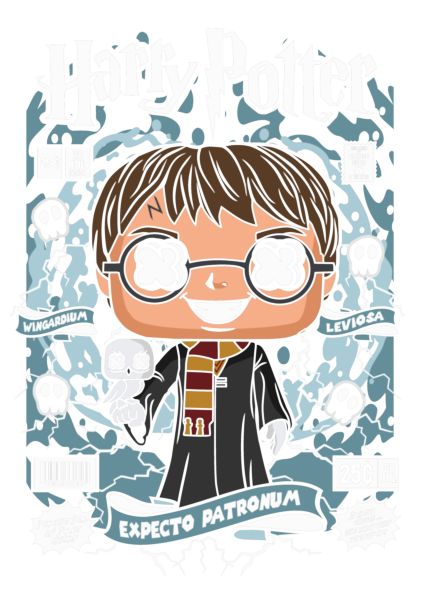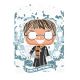 Χάρι Πότερ σε chibi κόμικ με γυαλιά, ουλή και Hedwig, με ξόρκια και αστραπές.