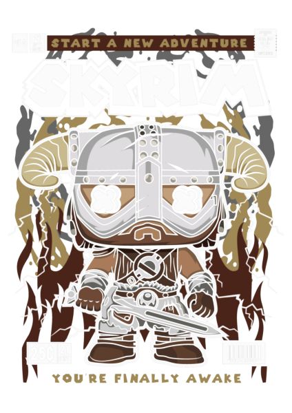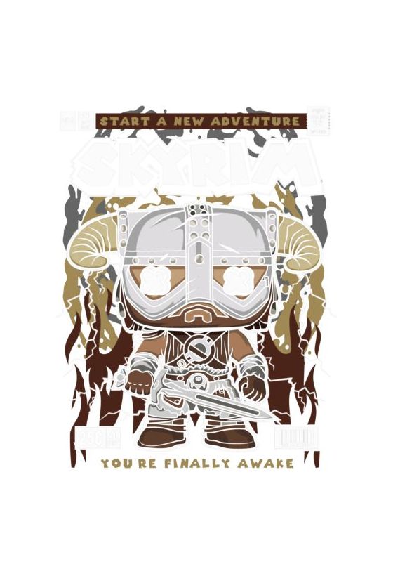 Dragonborn (Skyrim) σε Funko Pop στυλ κόμικ, κερασφόρο κράνος, τίτλος "SKYRIM".