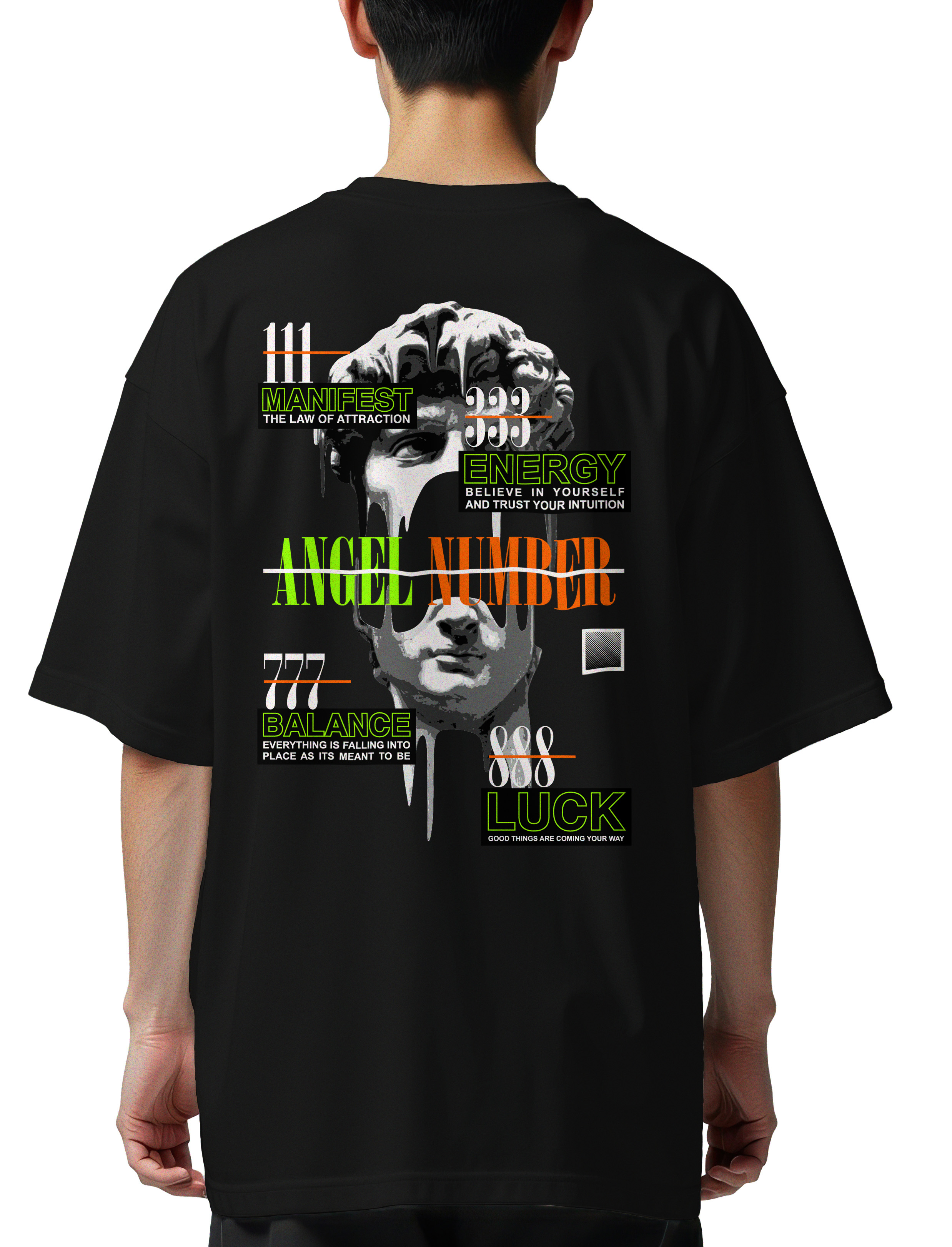 Oversized T-Shirt 777 Angel Number Pop Culture Black