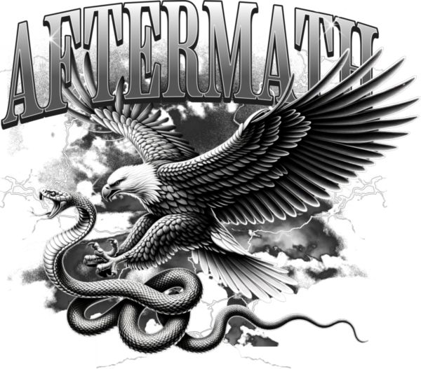 Αετός μάχεται φίδι σε ασπρόμαυρη σύνθεση με αστραπές. Κείμενο «ΜΕΤΑ».