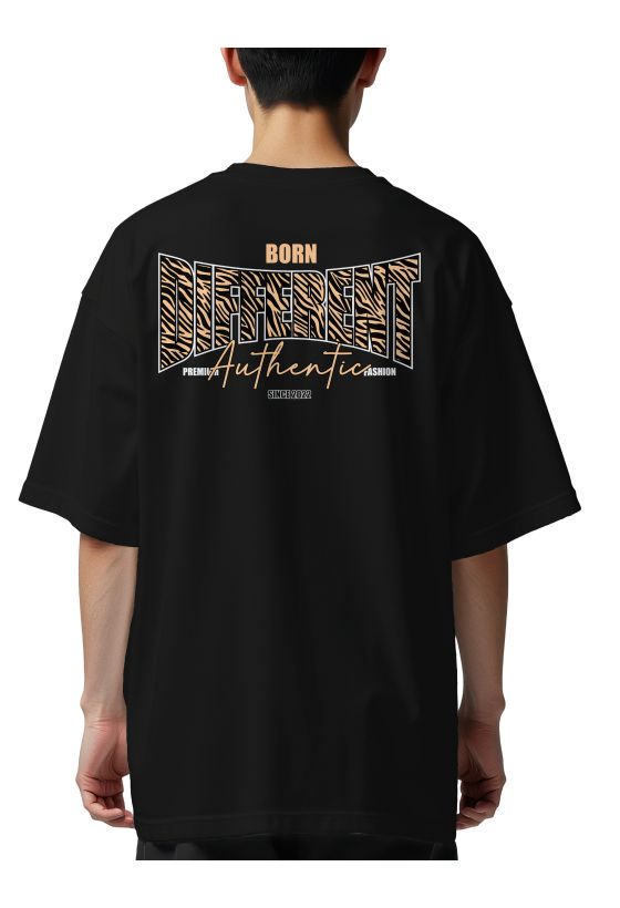 Γραφικό με επιγραφή «BORN DIFFERENT» με μοτίβο ζέβρας, «Authentic Premium Fashion».