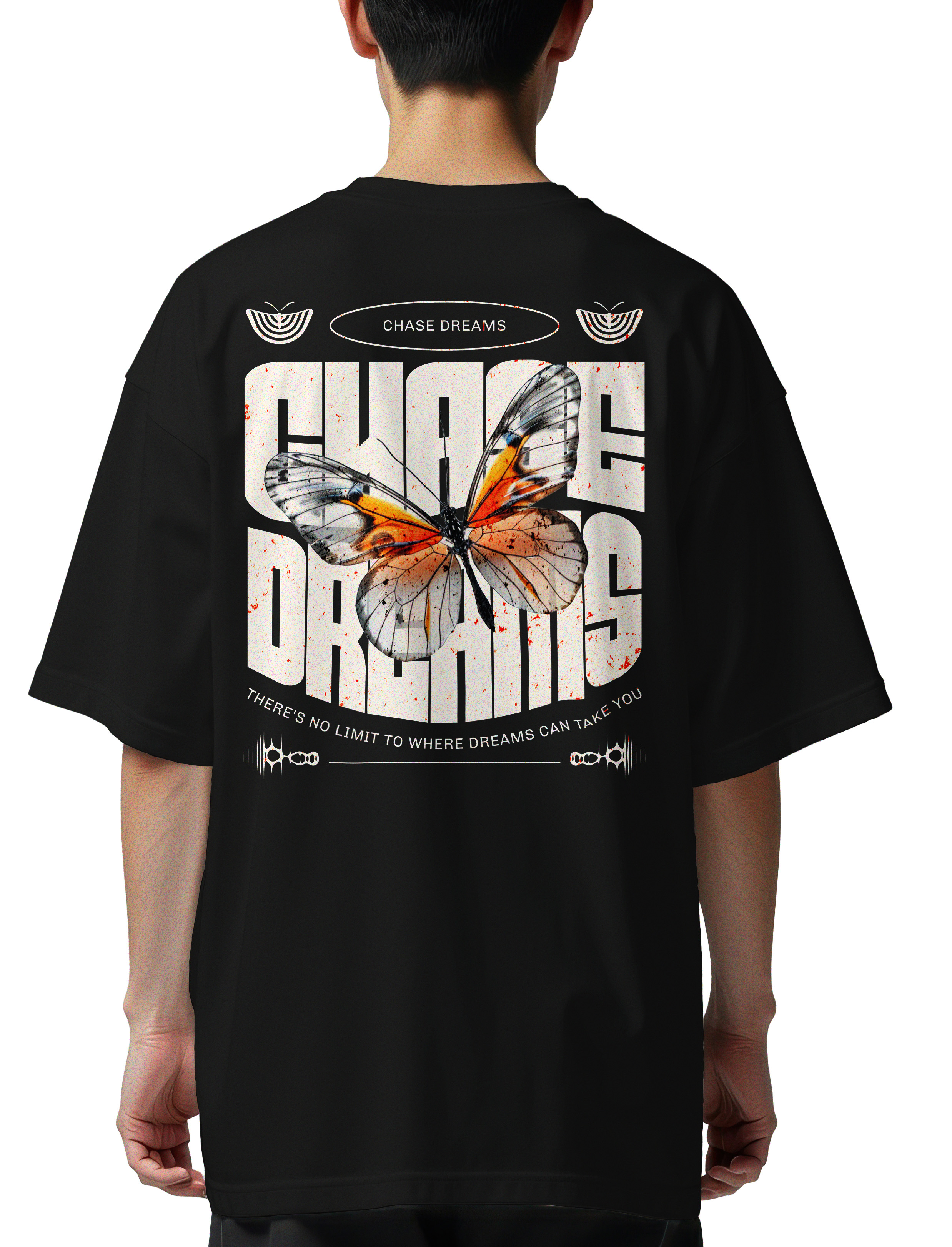 Oversized T-Shirt Chase Dreams Butterfly Pop Culture Black