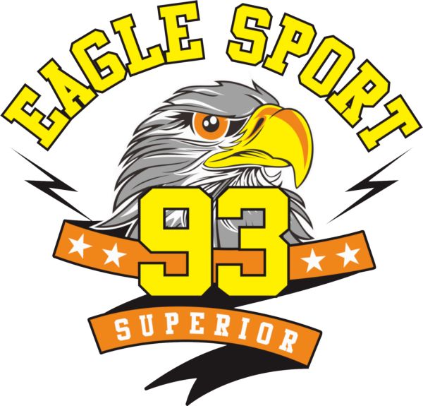 Αετός με κείμενο «EAGLE SPORT», αριθμός «93» και πανό «SUPERIOR».
