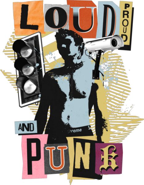Σιλουέτα άνδρα με κείμενο «LOUD PROUD AND PUNK». Urban στοιχεία και επαναστατική διάθεση.