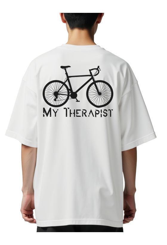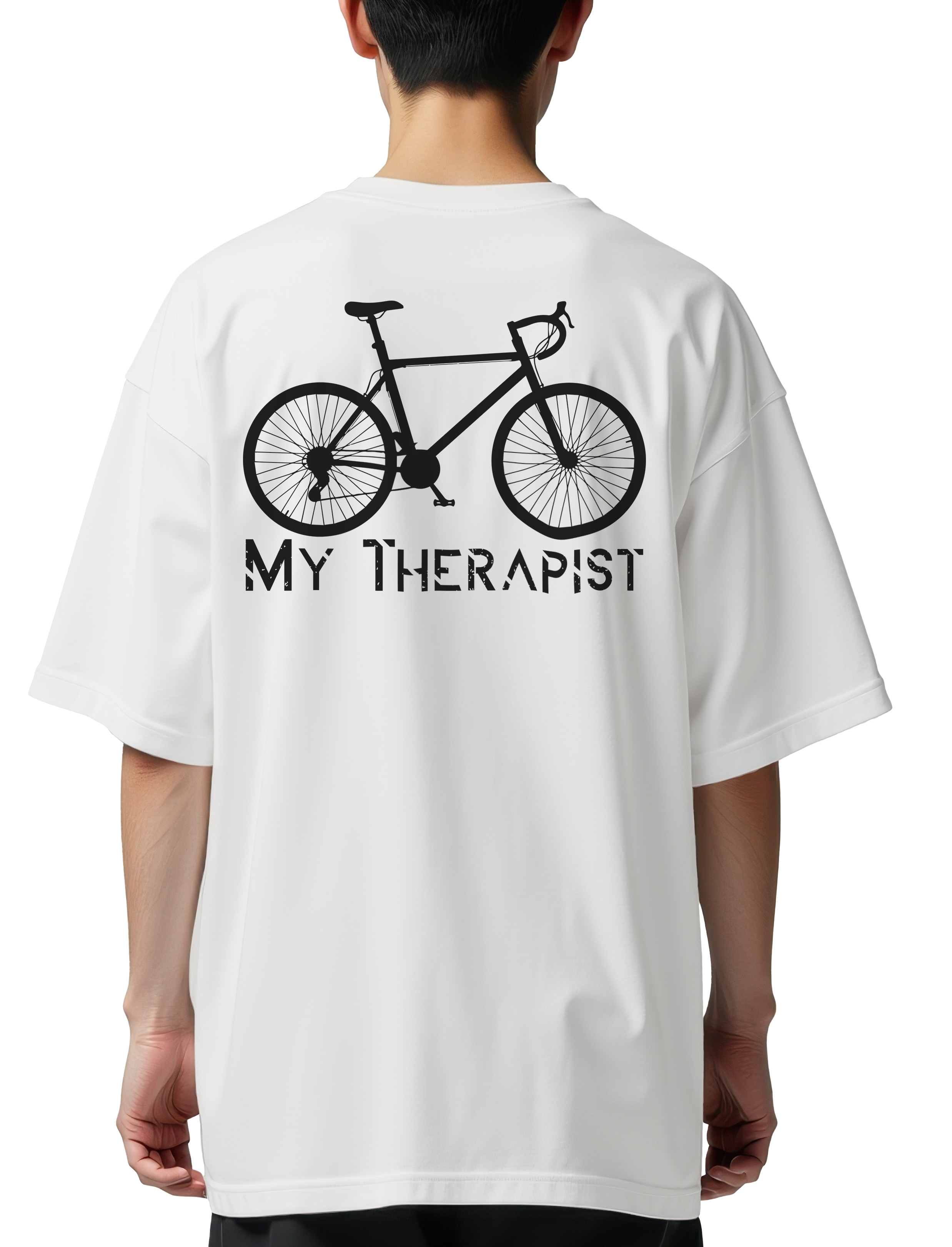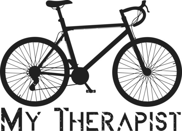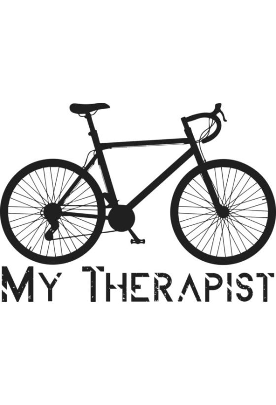 Μινιμαλιστικό σχέδιο με σιλουέτα ποδηλάτου δρόμου και το κείμενο My Therapist, σε μαύρο φόντο.