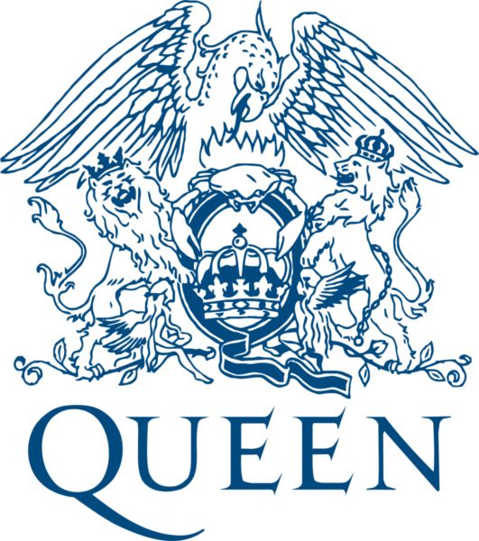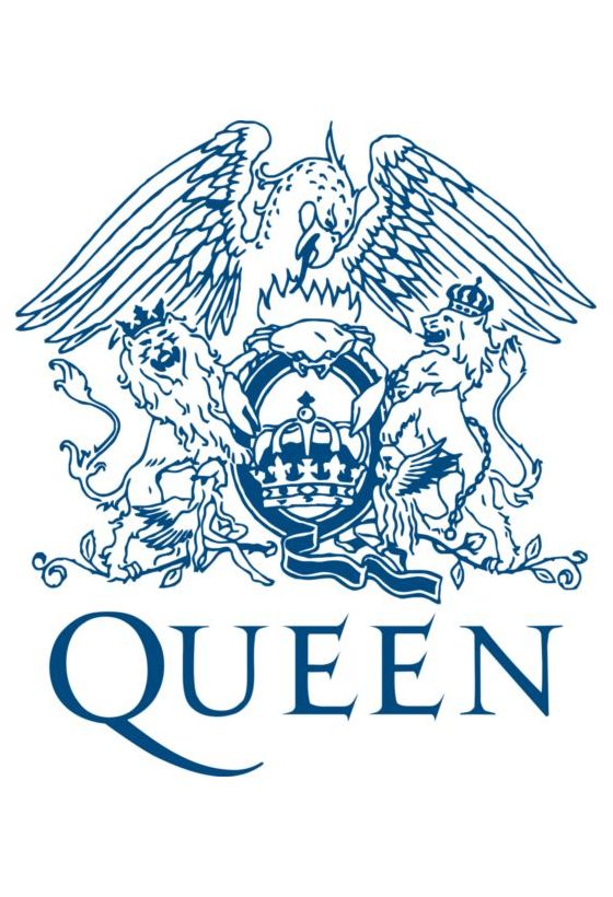 Έμβλημα Queen με αετό, λιοντάρια, στέμμα και το όνομα "QUEEN".