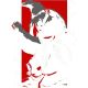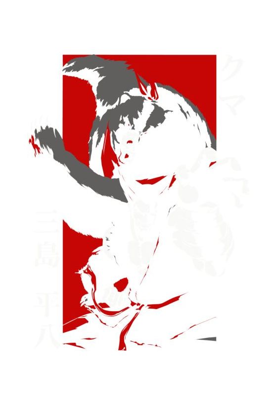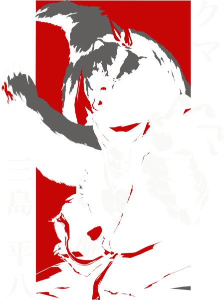 Heihachi και Kuma (Tekken) σε μαύρο-κόκκινο στυλ, ιαπωνικά γράμματα δίπλα.