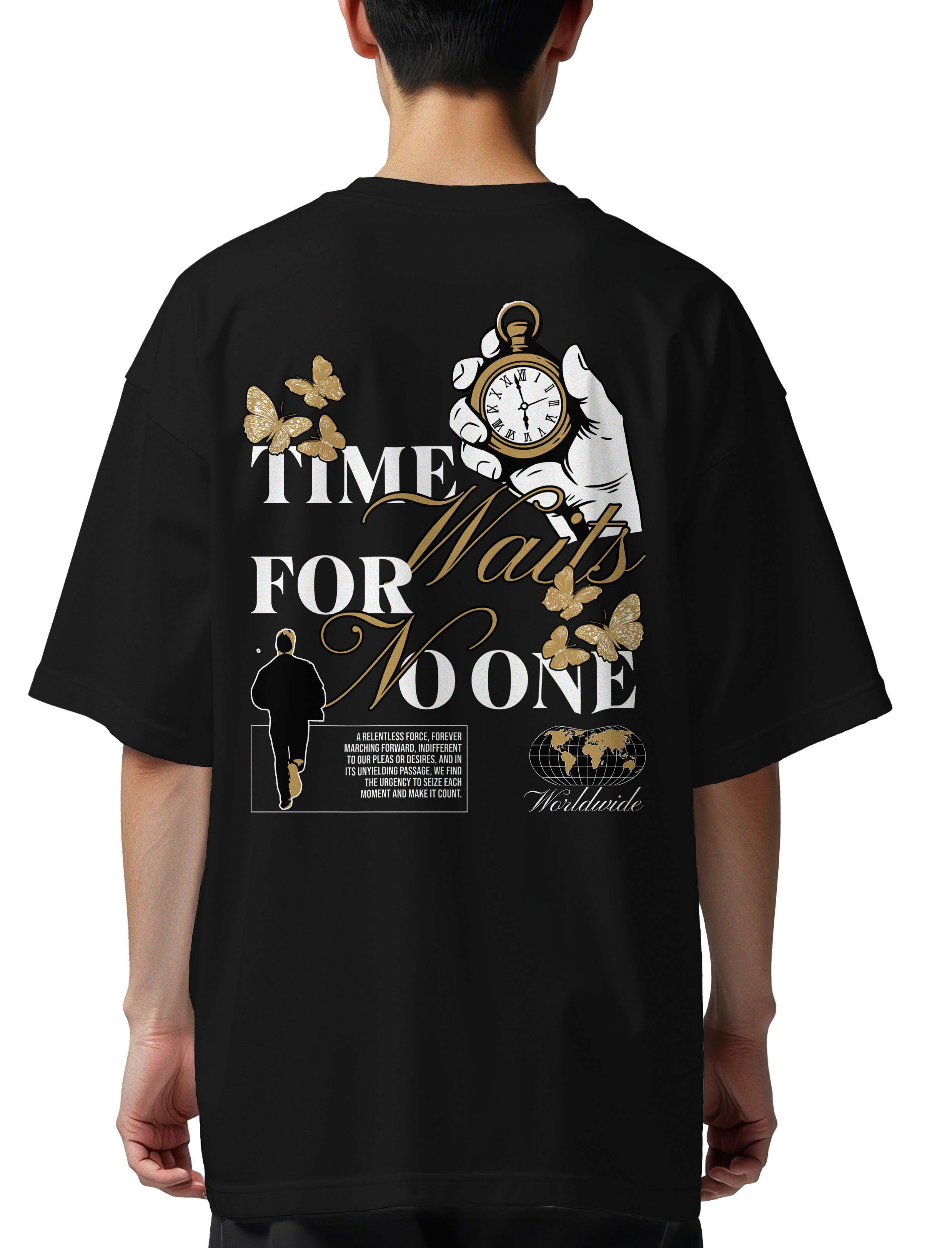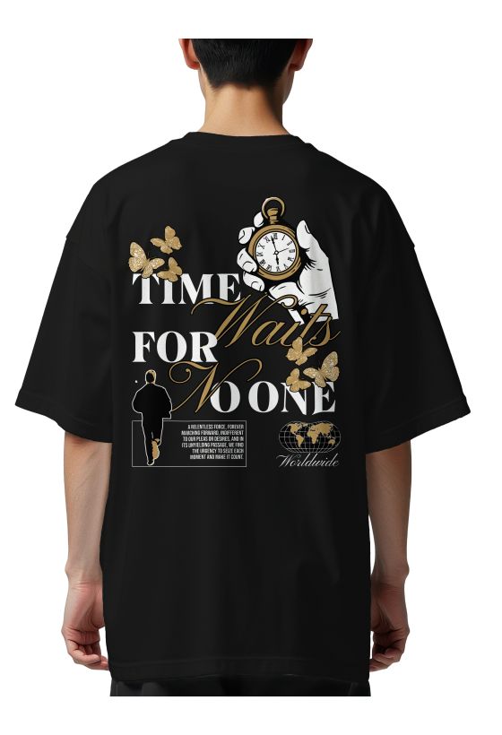 Oversized T-Shirt Time Waits For No One Pop Culture Black