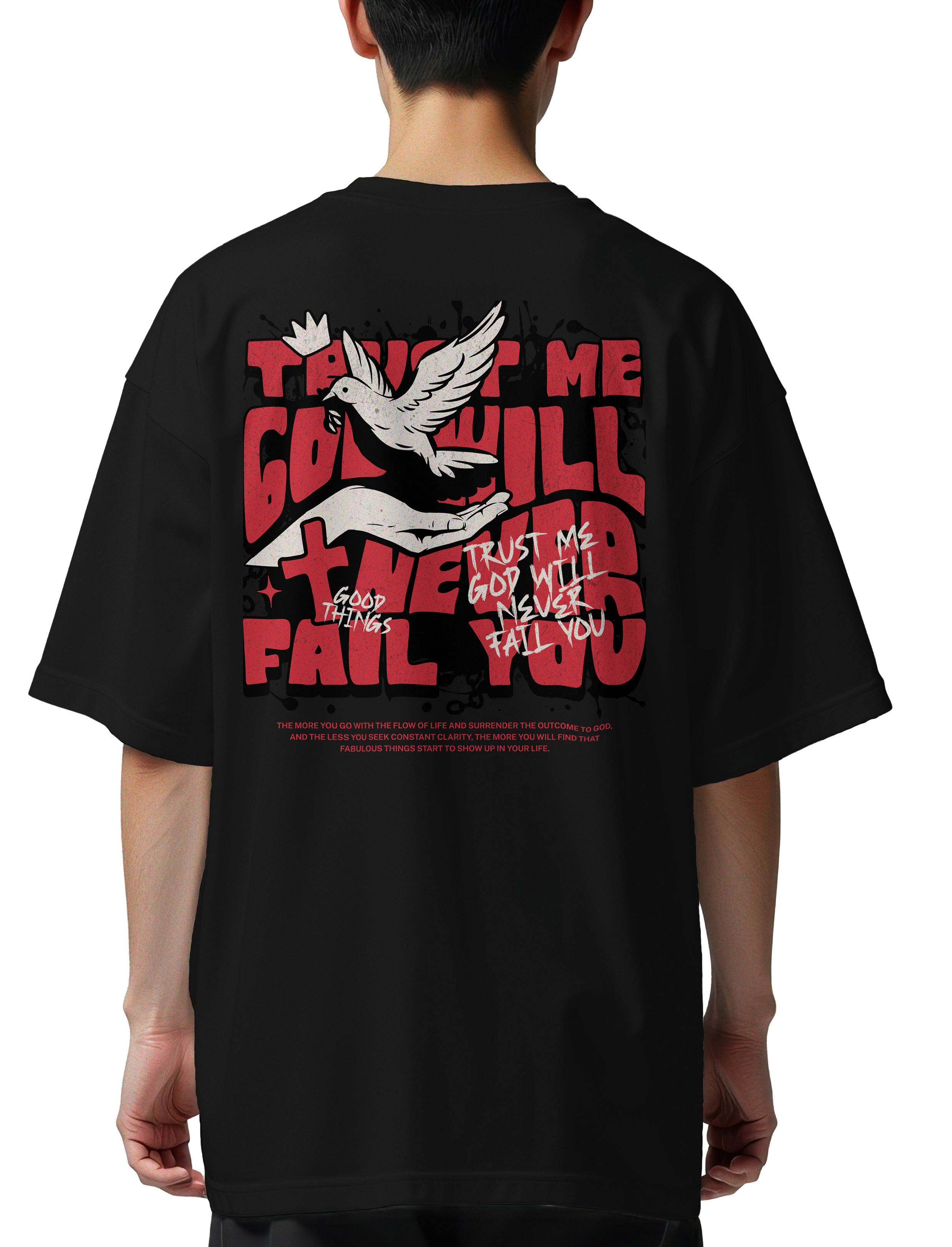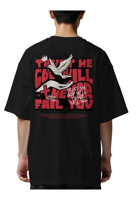 Oversized T-Shirt Trust Me God Will Never Fail You Pop Culture Black