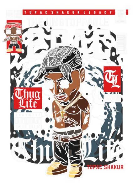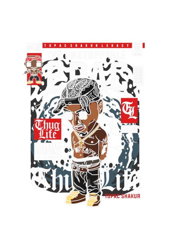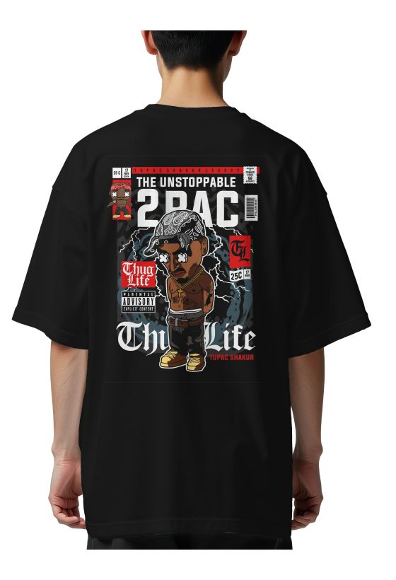 Εξώφυλλο κόμικ Tupac Shakur με μπαντάνα, "Thug Life" tattoo, τίτλο "THE UNSTOPPABLE 2PAC".