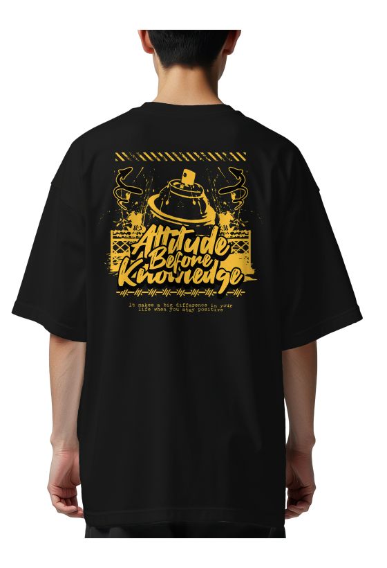 Oversized T-Shirt Attitude Before Knowledge Pop Culture Black